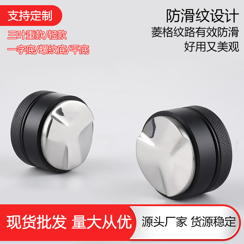 コーヒー布粉器ステンレス圧粉器イタリア式コーヒーマシン平底三糊圧粉ハンマー51/53/58mm共通