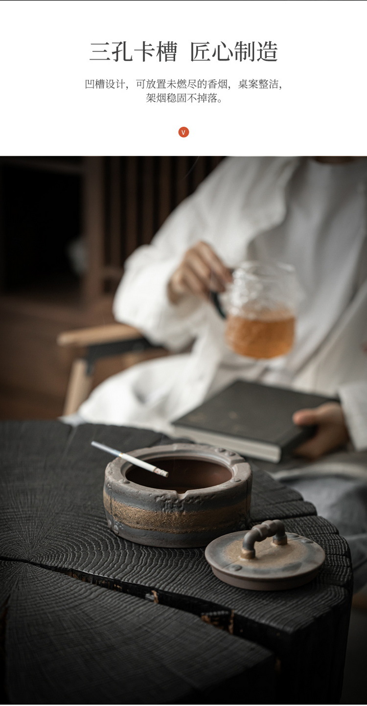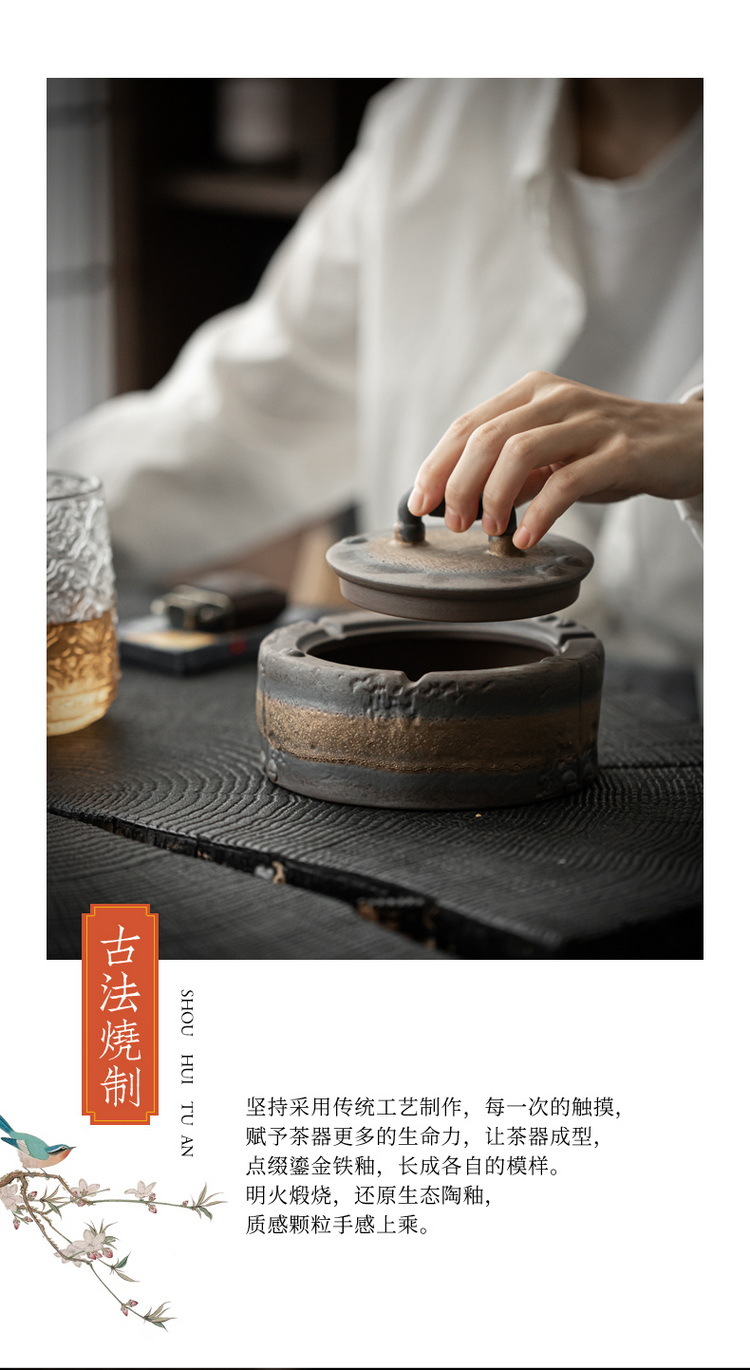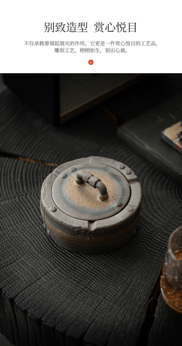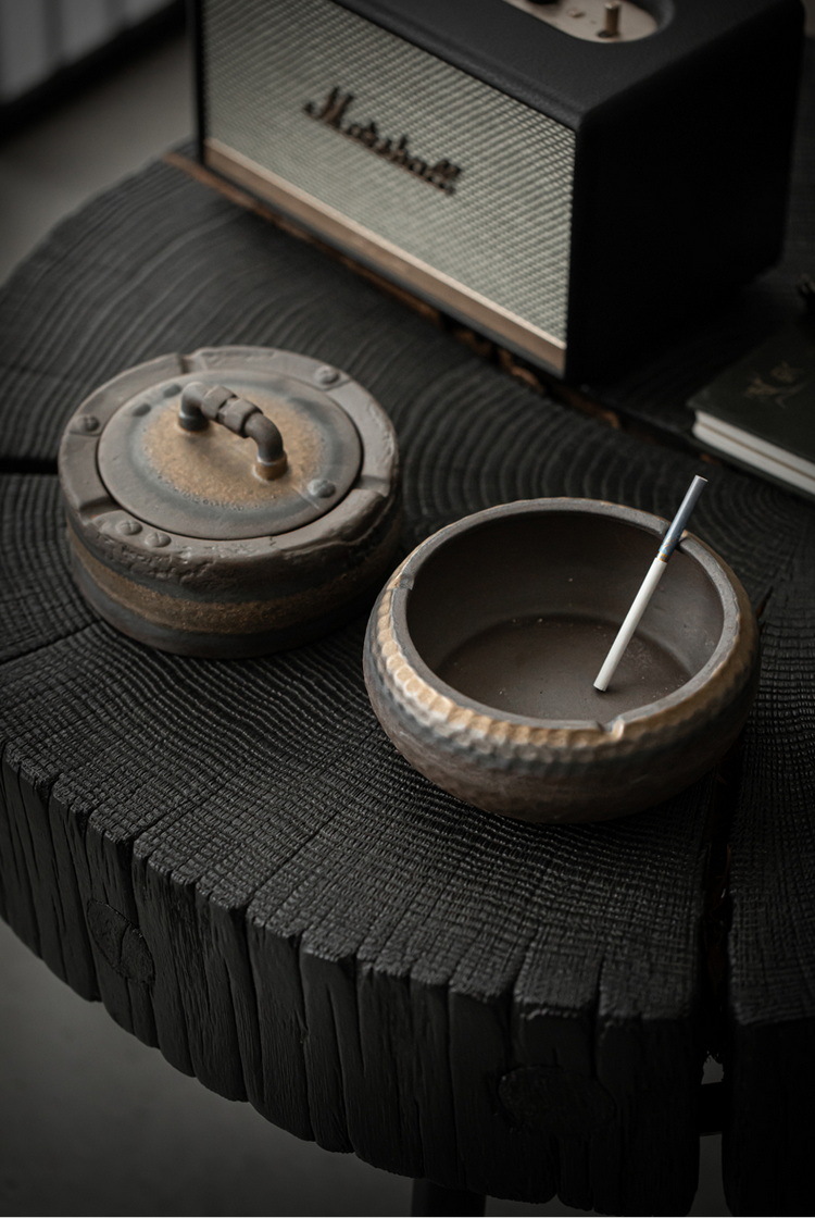 カラー 粗陶金灰皿-ハンマー,粗陶金蓋付き灰皿-剛毅