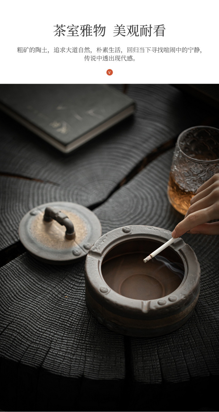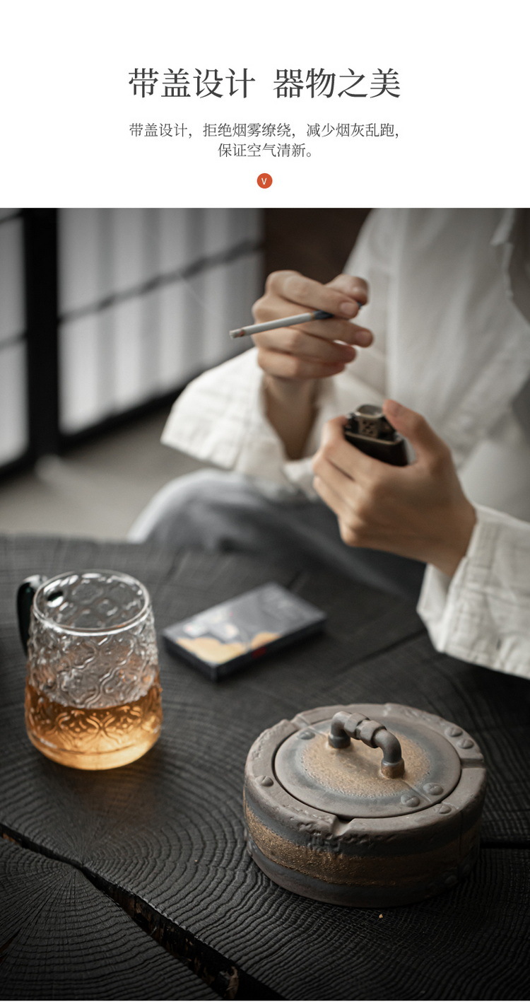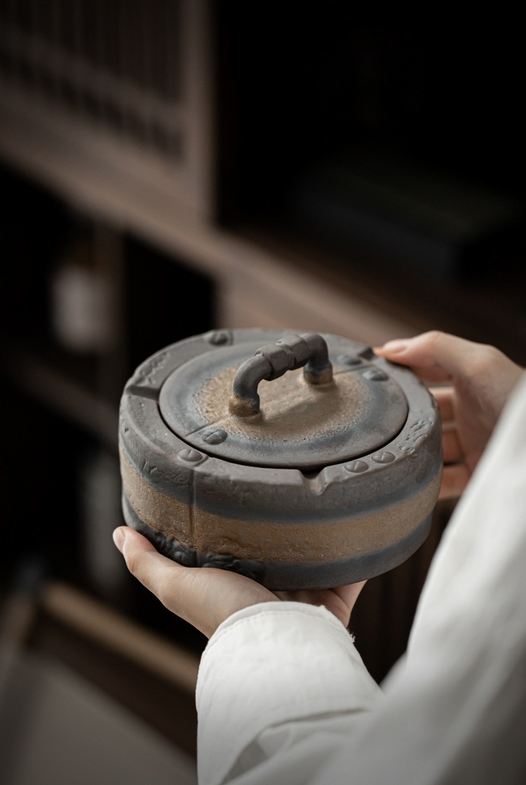 カラー 粗陶金灰皿-ハンマー,粗陶金蓋付き灰皿-剛毅