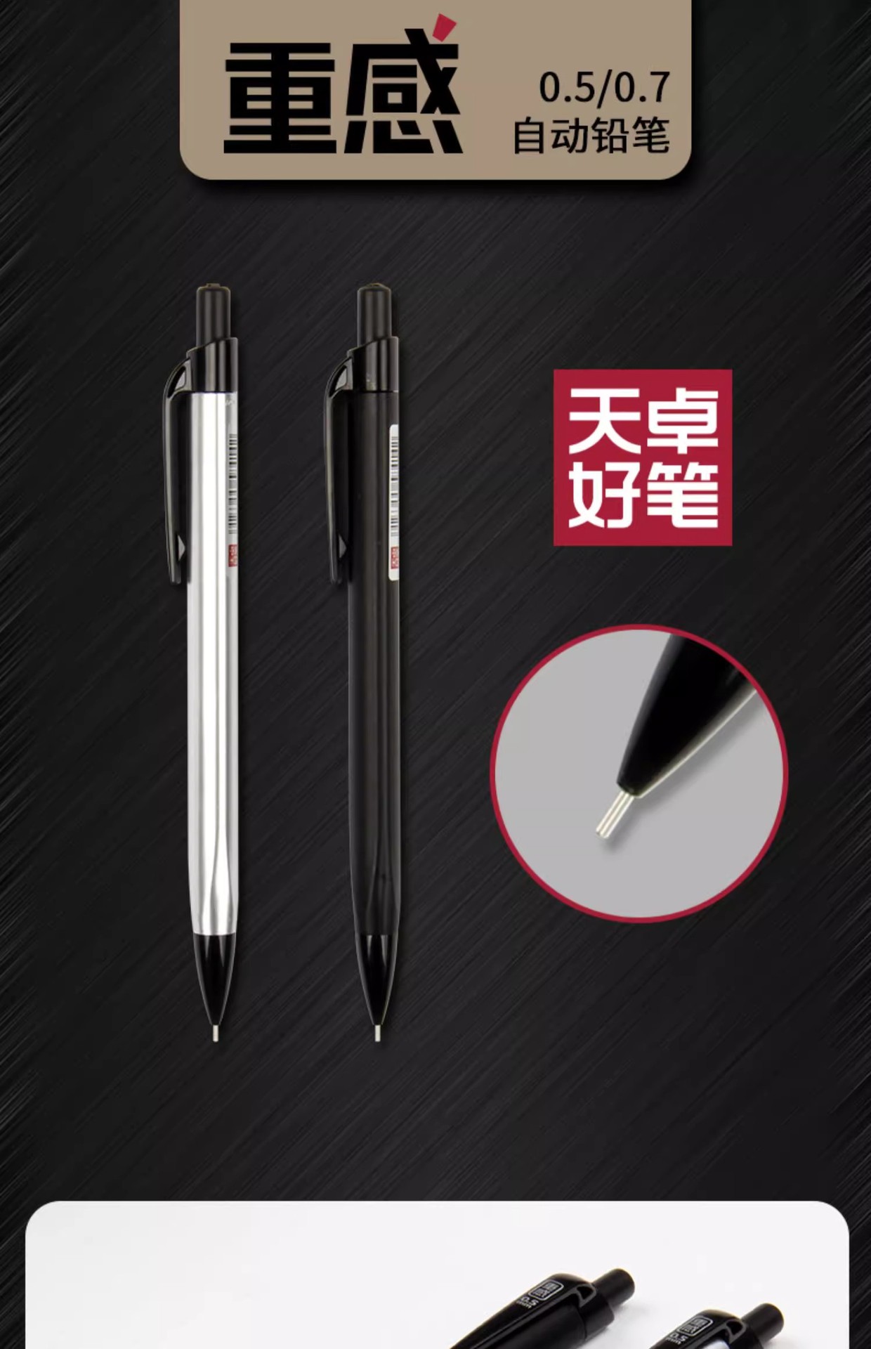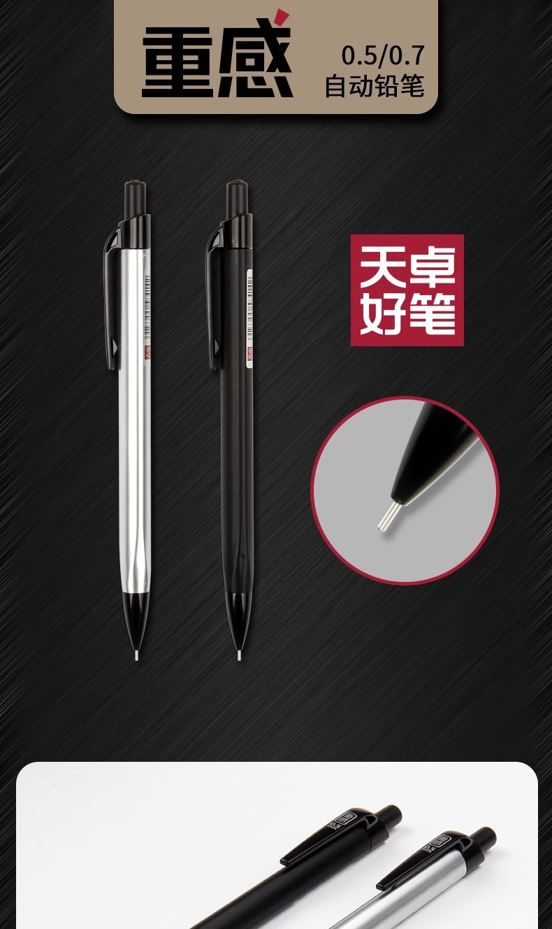 天卓02880重感活動鉛筆0.5mm0.7mm書き滑らかで芯高颜値シャープ鉛筆
