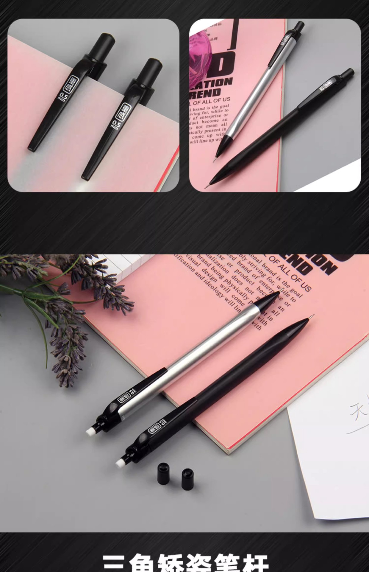 押し鉛筆高颜値シンプル学生絵画自動ペン0.5強硬度樹脂鉛芯0.7