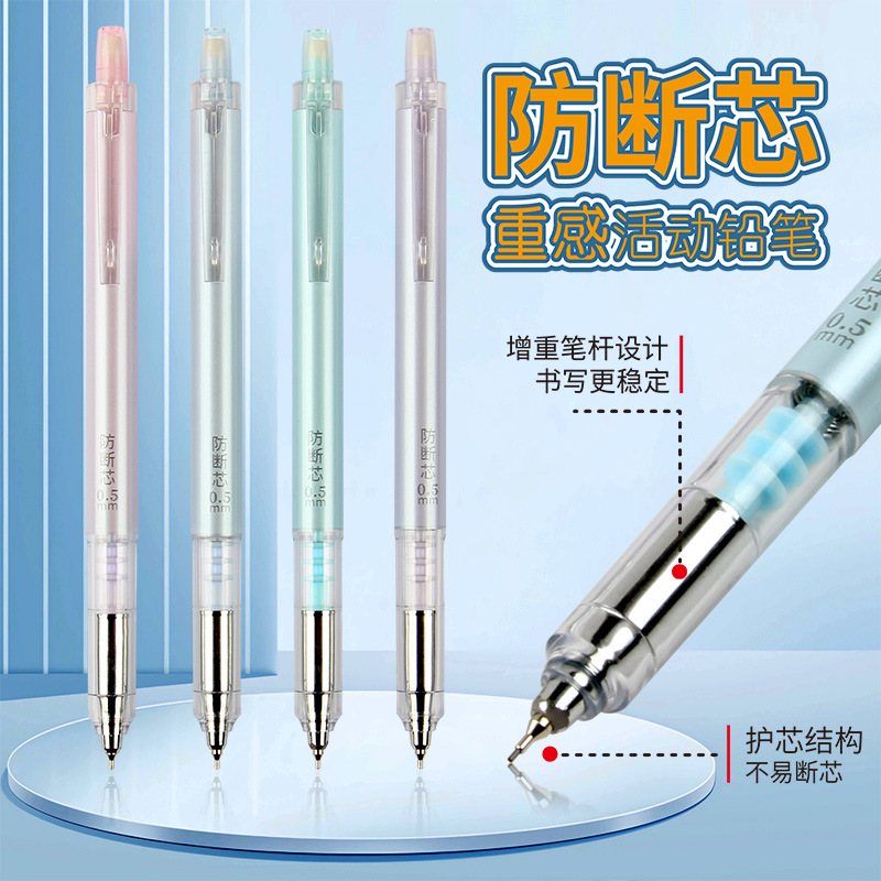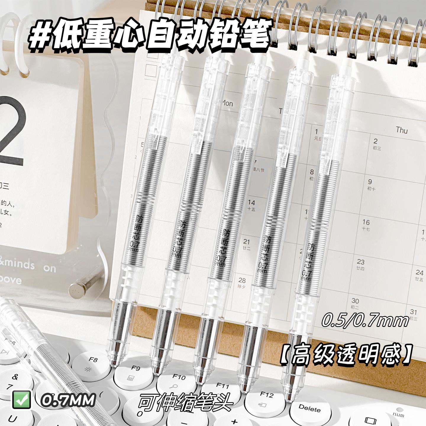 天卓02881防断芯重感自动铅笔学生用高颜值高级透明无印活动铅笔