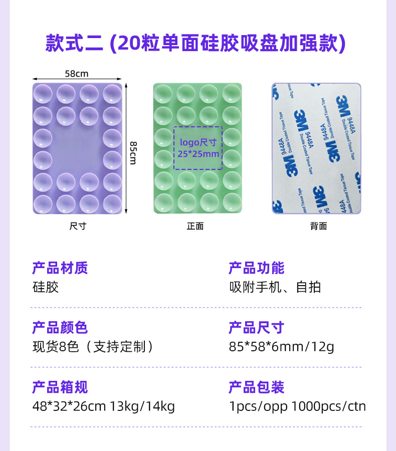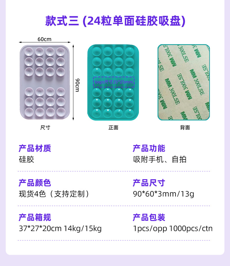 现货跨境爆款手机硅胶吸盘 24粒方形防滑手机贴 双面加大硅胶吸盘