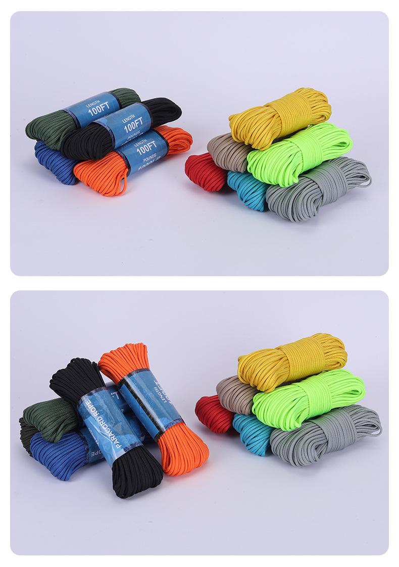 7芯9芯パラコード手織りロープ、キャンプテント、登山、アウトドアサバイバルアドベンチャー、カラフルな編み手縄