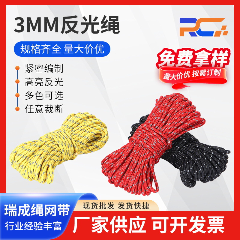 3mm反射ロープ反射服帽子ひも服装バッグ補助材料編み包みひも丸ひもカラー編みひも