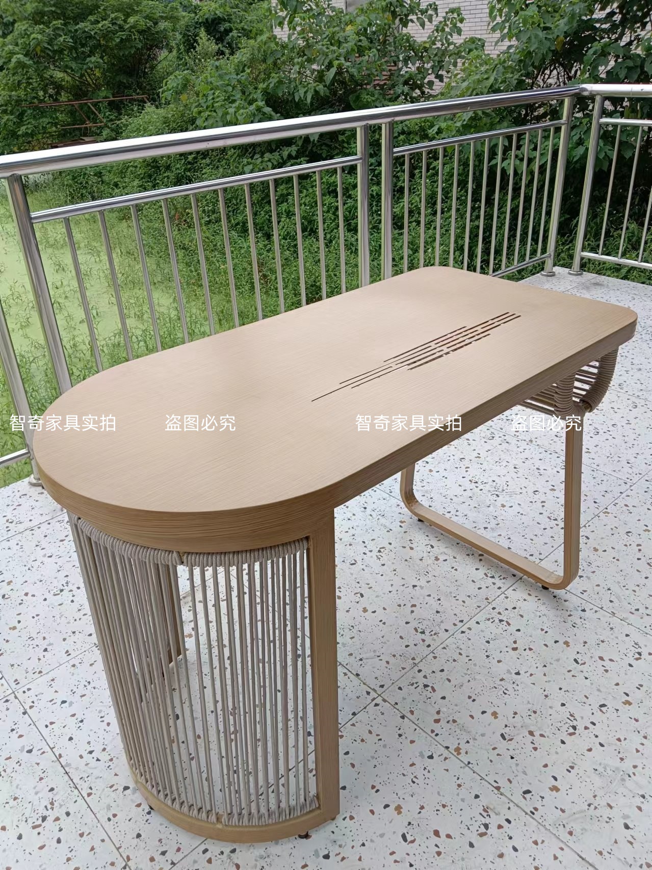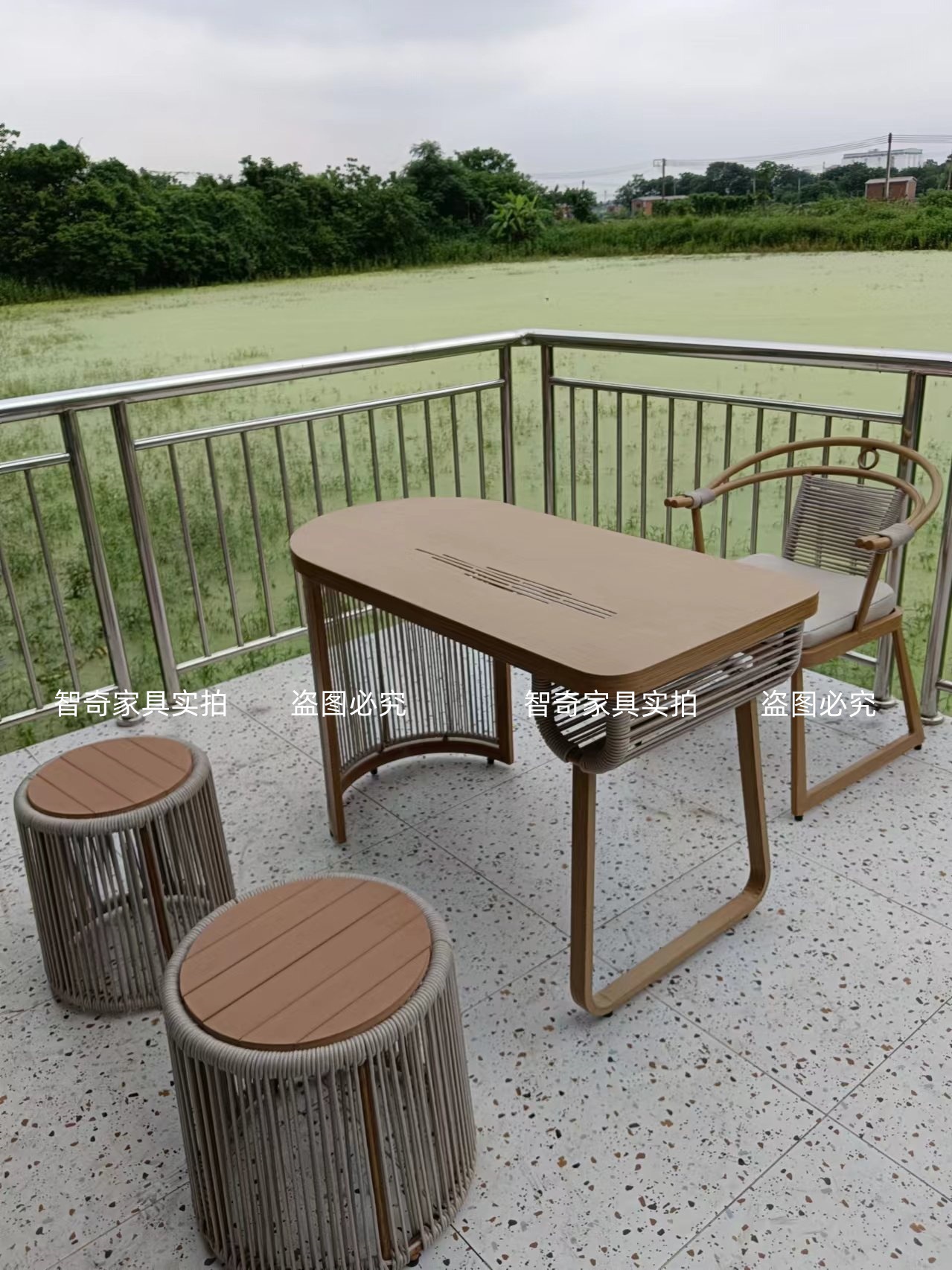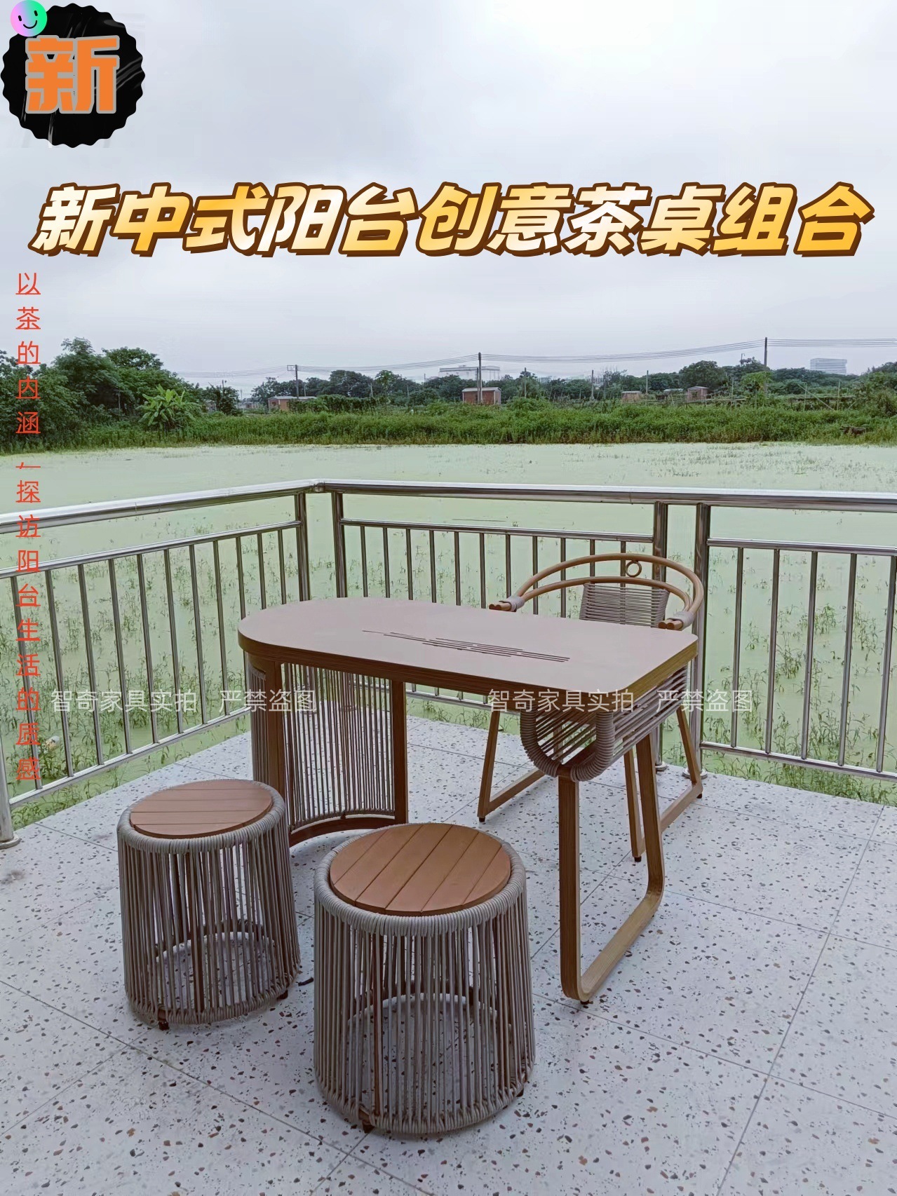 室外の新しい中国式のベランダのテーブルと椅子の組み合わせの新型の禅意の茶台のアルミニウム合金の庭の小型の家庭用のお茶のテーブル