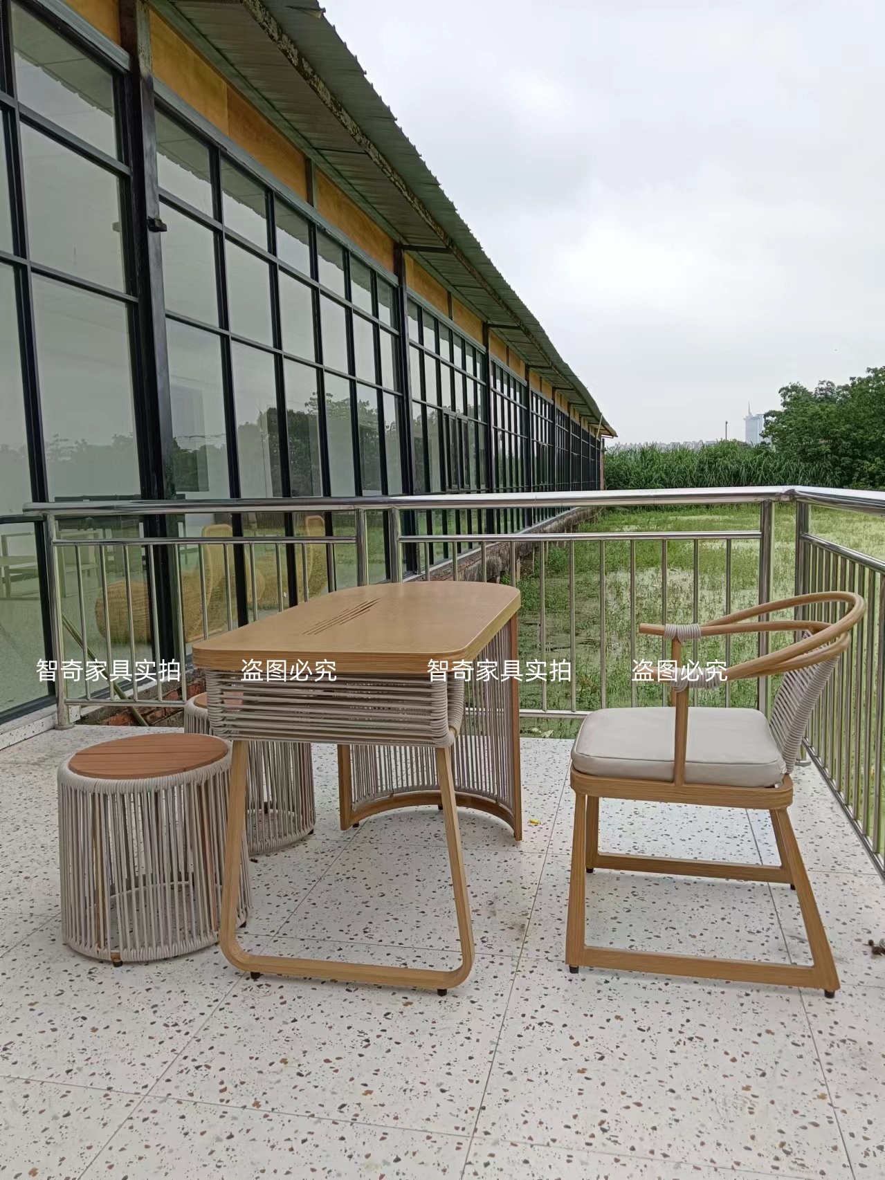 屋外チーク籐椅子ソファ中庭B&Bガーデンバルコニーレジャー籐防水編組ロープ組み合わせ屋外家具