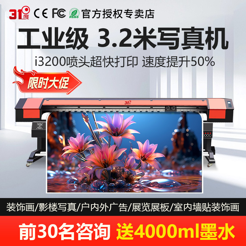 31度大型万能喷绘写真机3.2米宽幅面一体机广告数码印刷机设备
