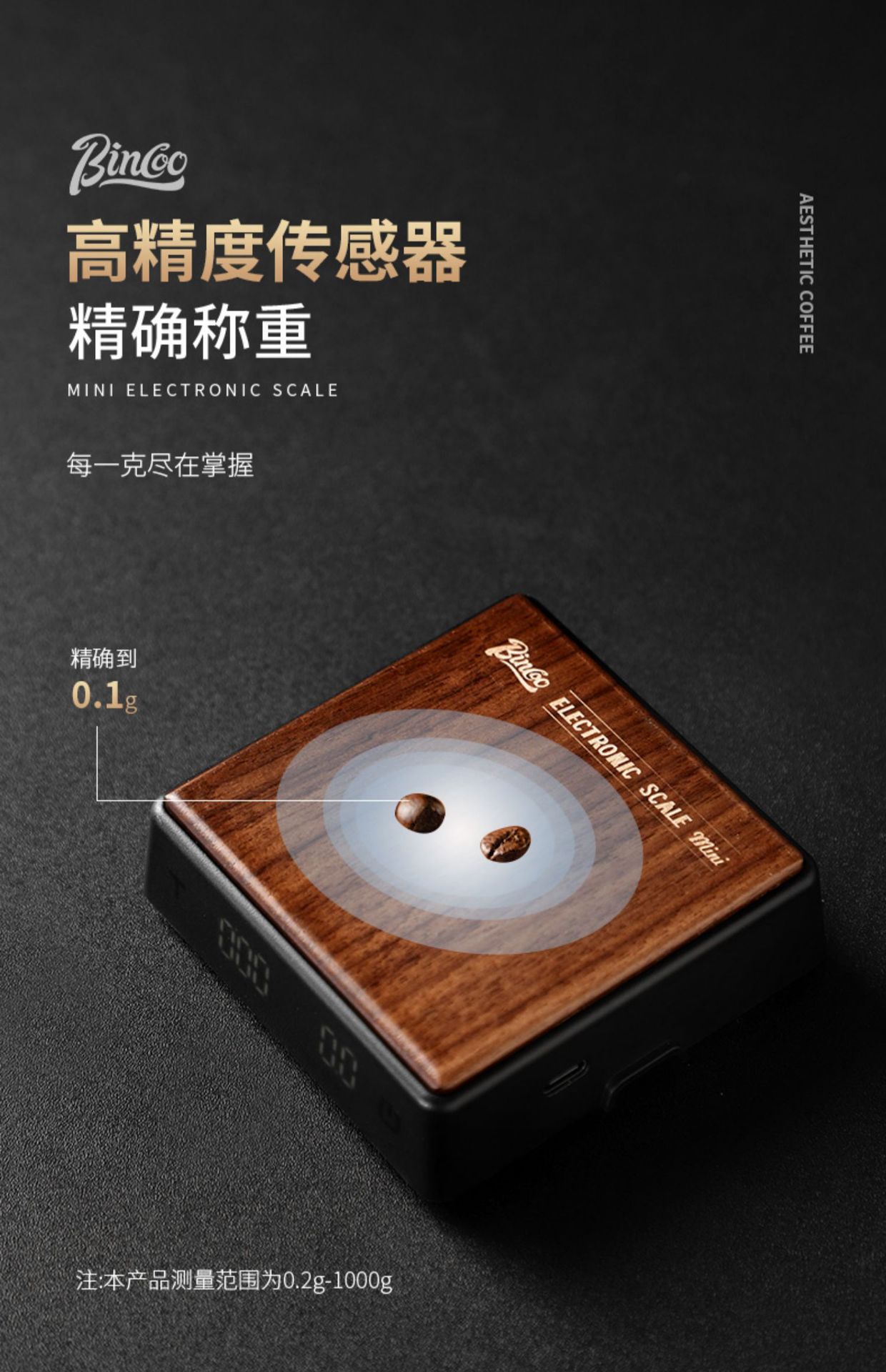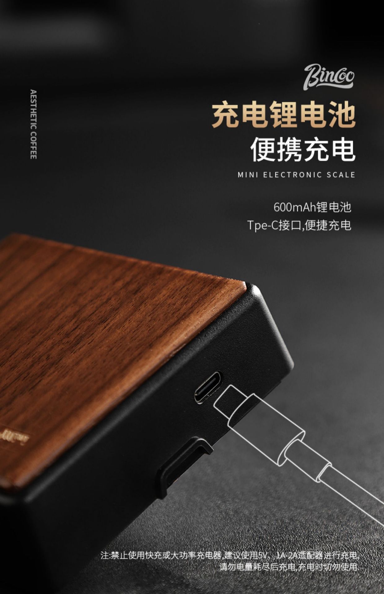 Bincooコーヒー電子秤mini知能式秤高精度充電コーヒー秤粉水比専用重量
