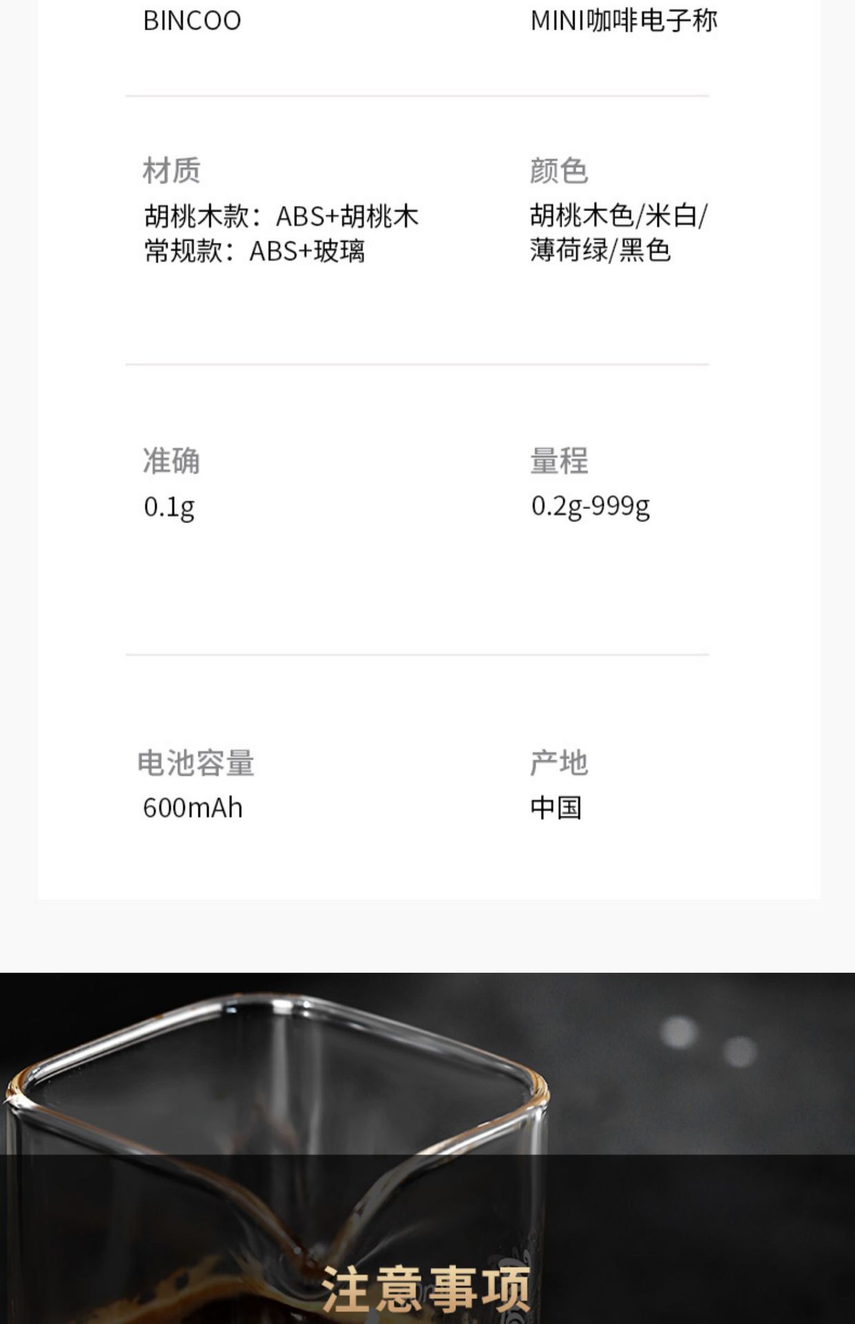 Bincoo同型コーヒー電子秤イタリア式専用コーヒー豆計量知能手沖ミニ携帯器具