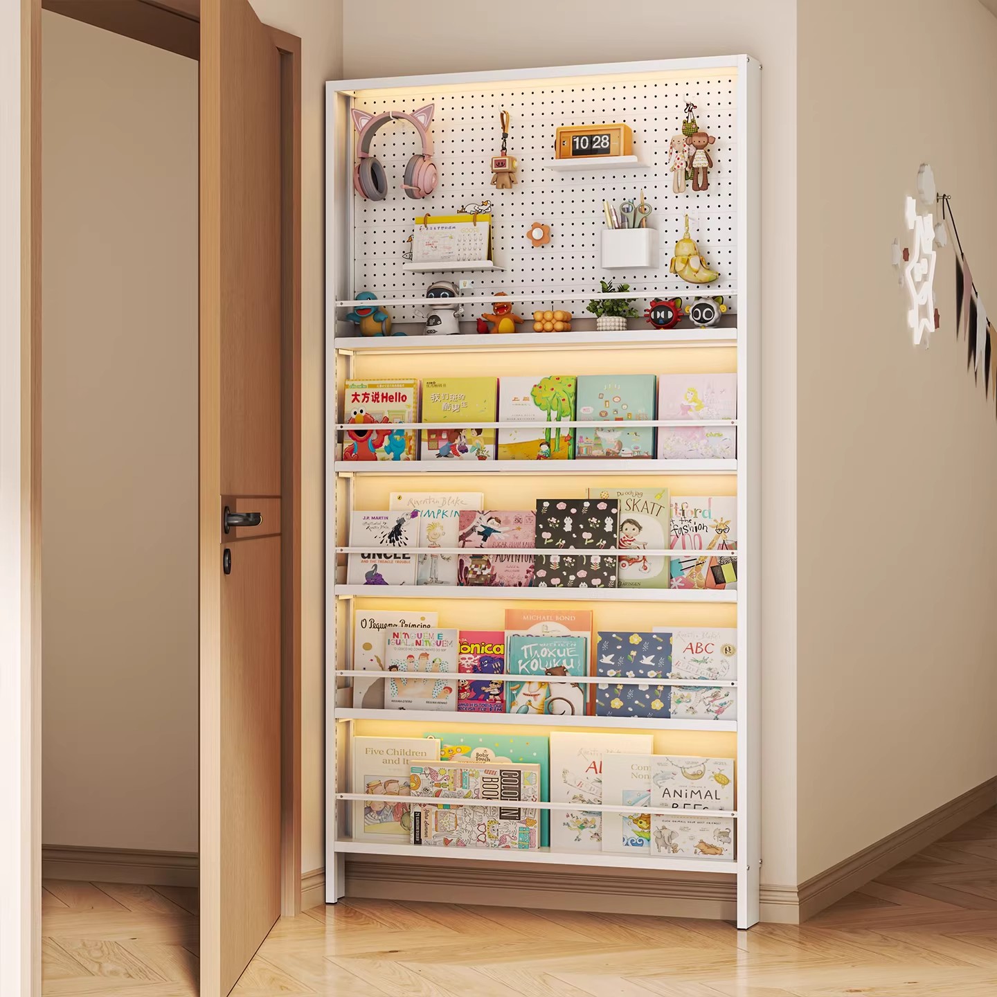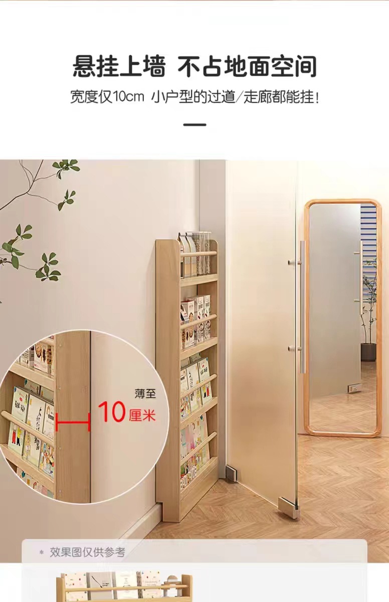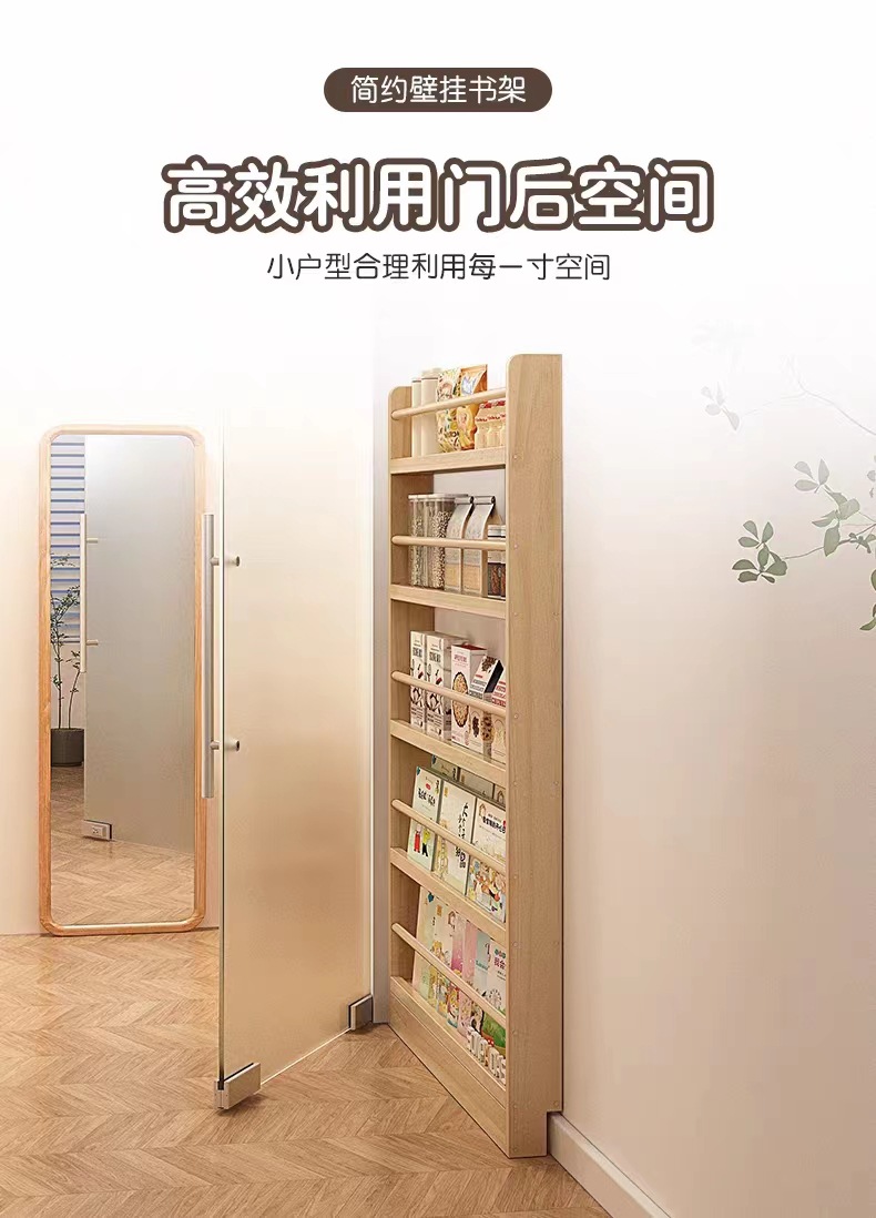 壁掛け本棚の実木超薄型本棚のドアの後ろの隙間に収納棚の多層チーズの薄い棚の挟みには狭い棚があります。
