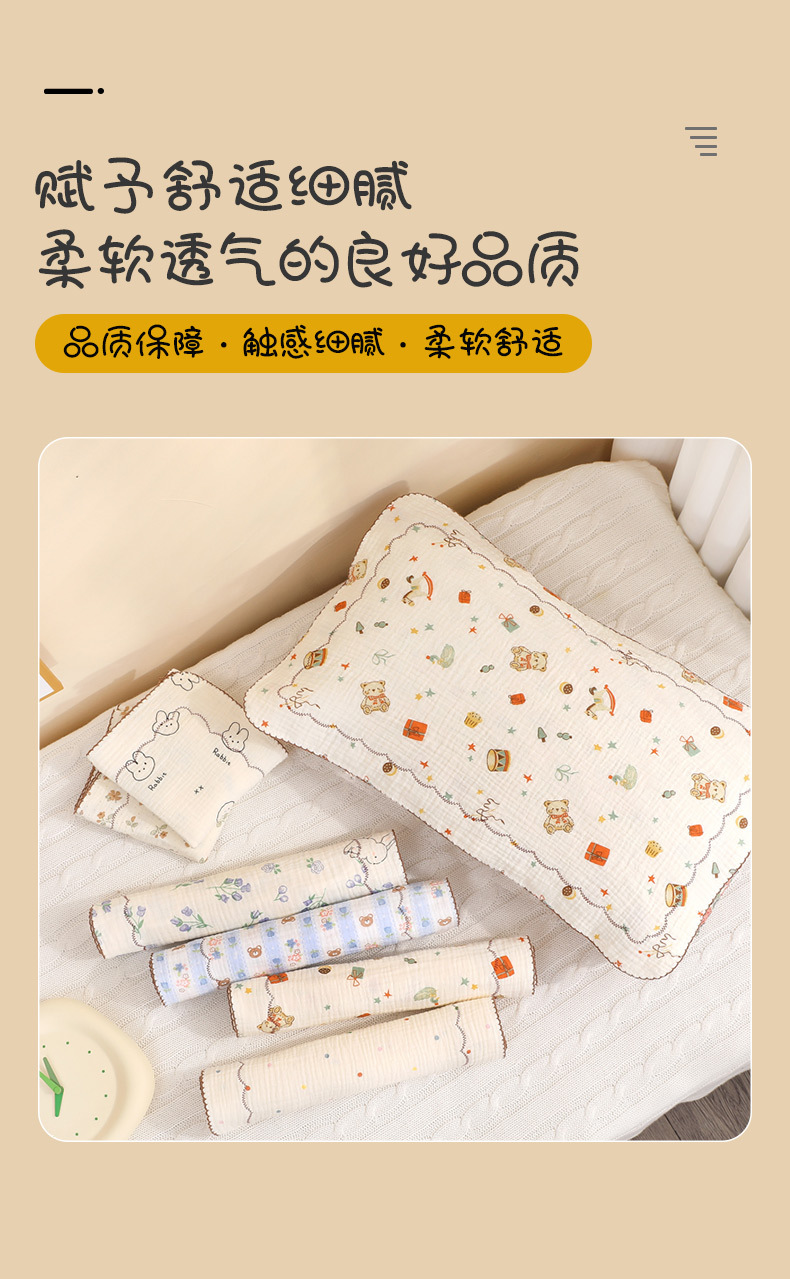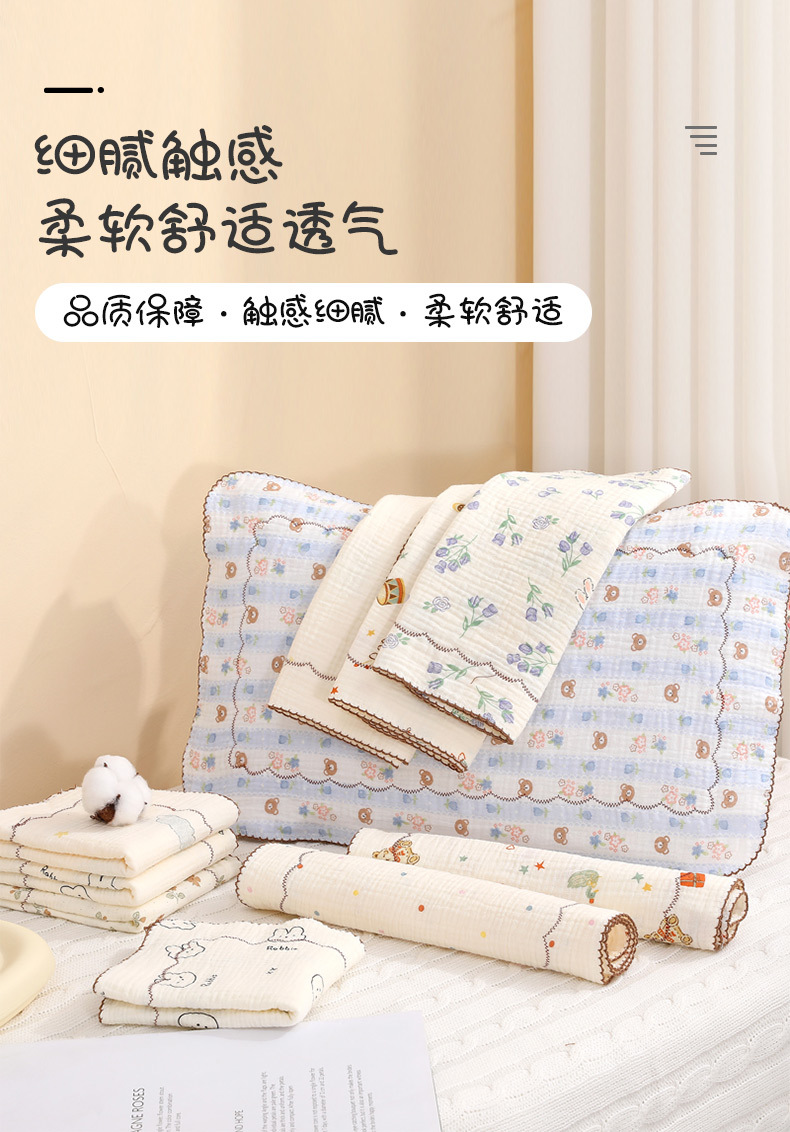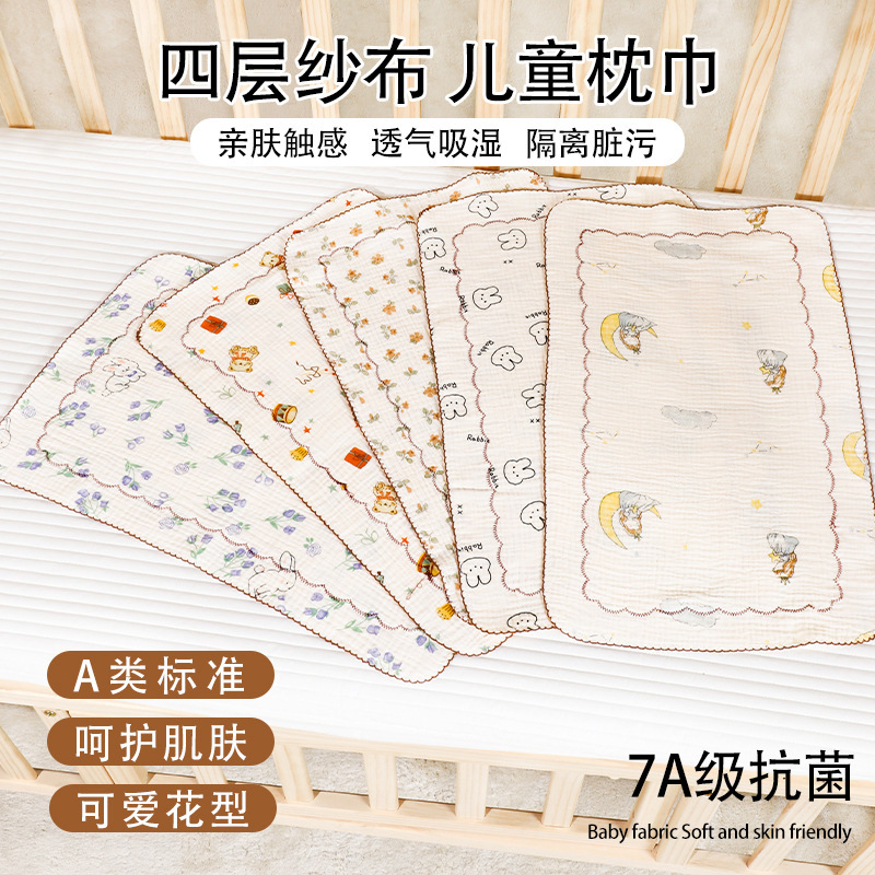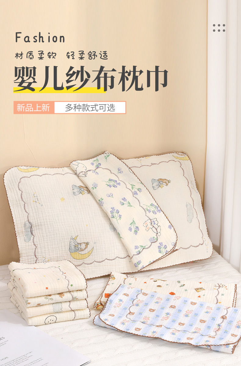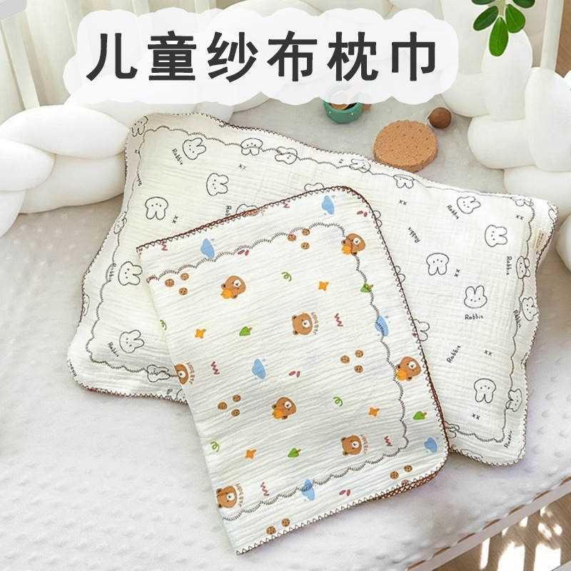婴儿枕巾纯棉纱布新生儿宝宝枕头盖巾透气吸汗防吐奶幼儿园枕垫巾
