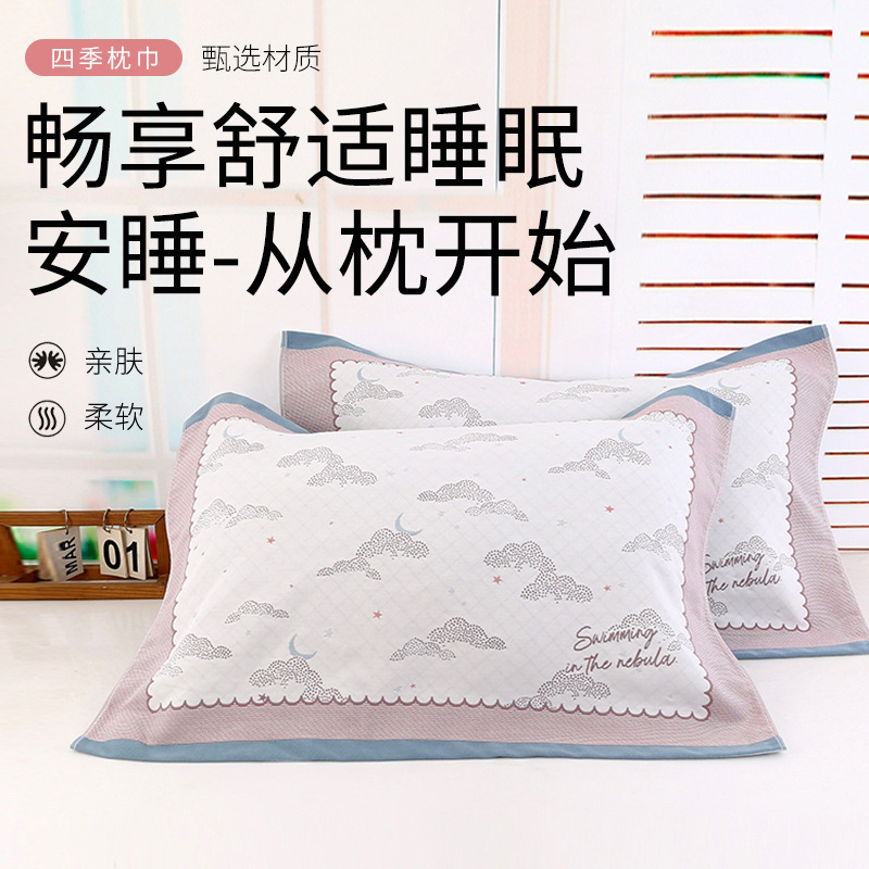 纯棉纱布枕巾一对装加厚柔软透气成人盖巾四季通用情侣全棉枕头巾