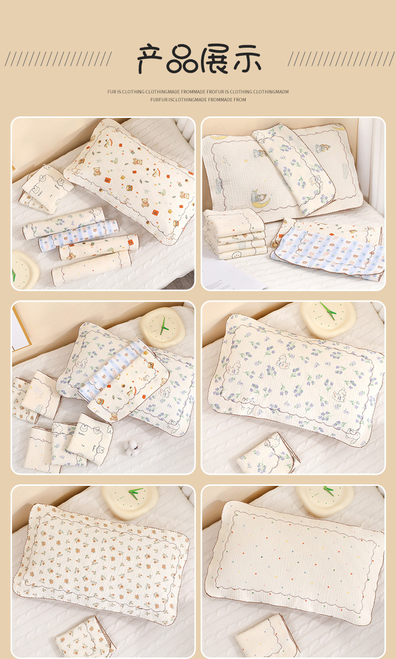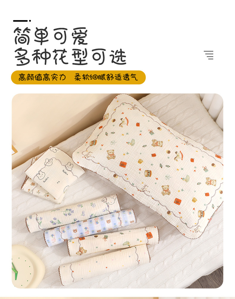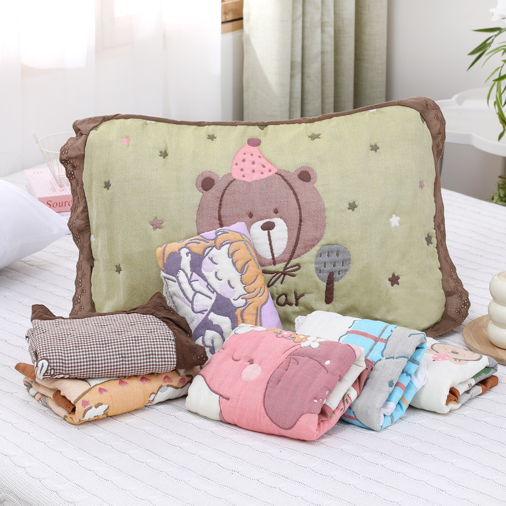 ガーゼ綿シュークリーム枕タオル子供漫画パターン柔らかく快適吸汗通気性赤ちゃん枕カバー卸売