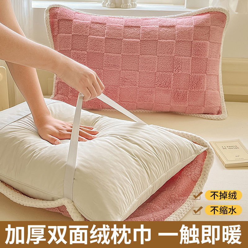 A类母婴绒枕巾一对装套装单只水洗绑带家用防脱落枕头巾毛巾盖巾