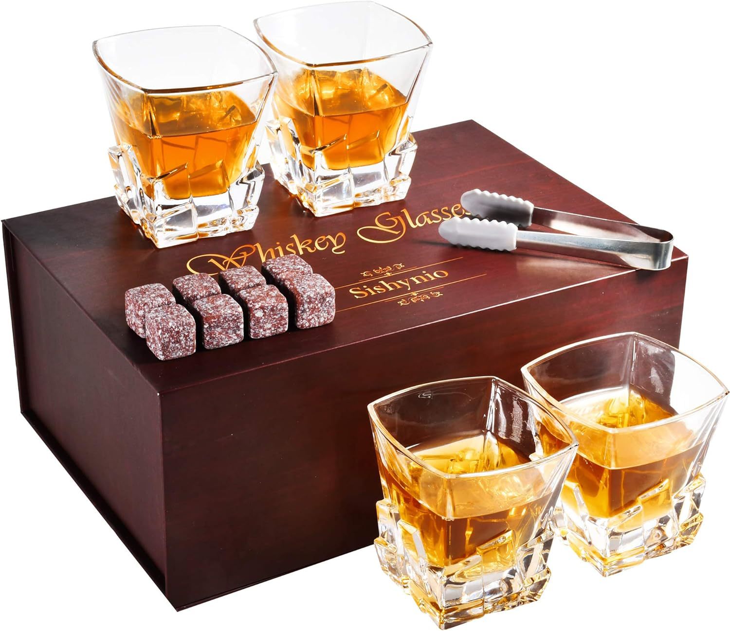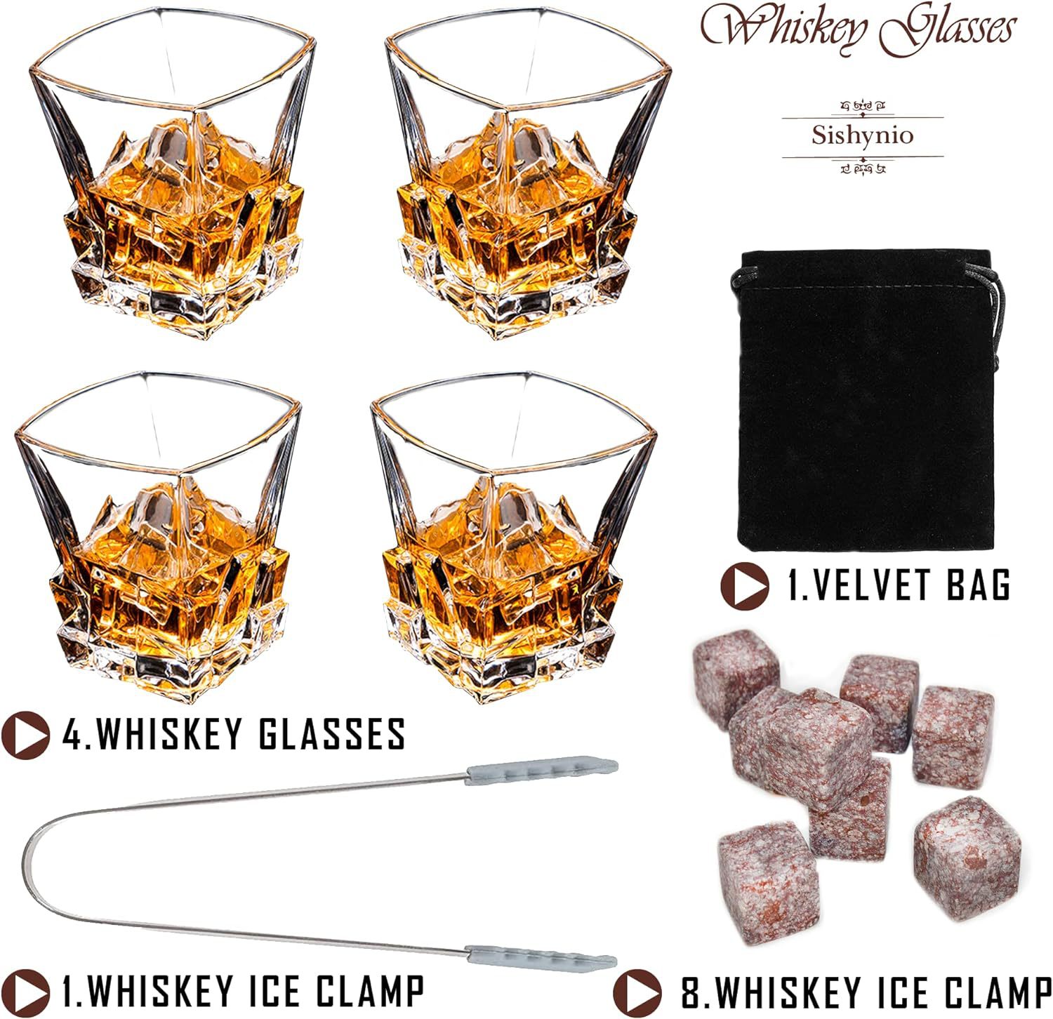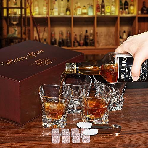 ガラスカップ4点セット、ワイングラスセットには8個の立方体花崗岩製アイスストーン付き、ウイスキーグラス