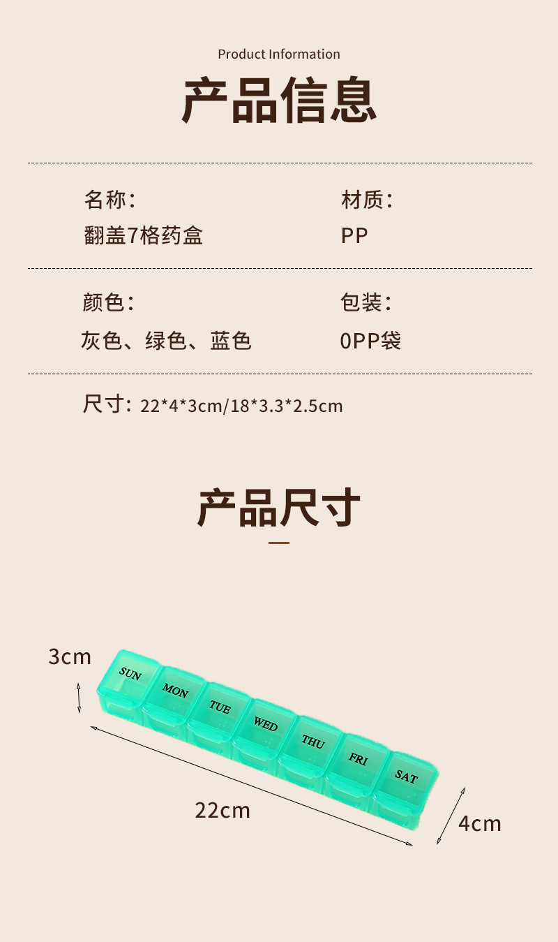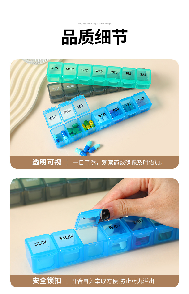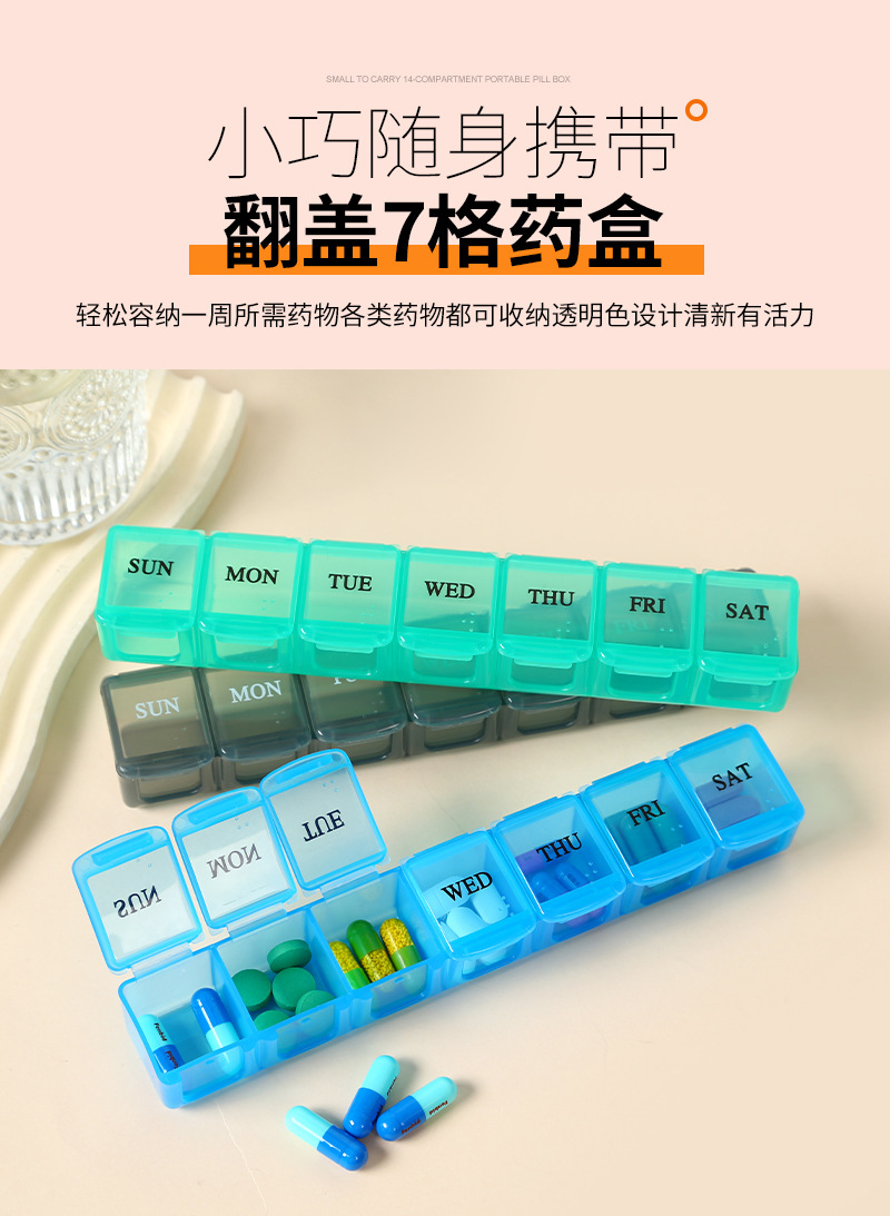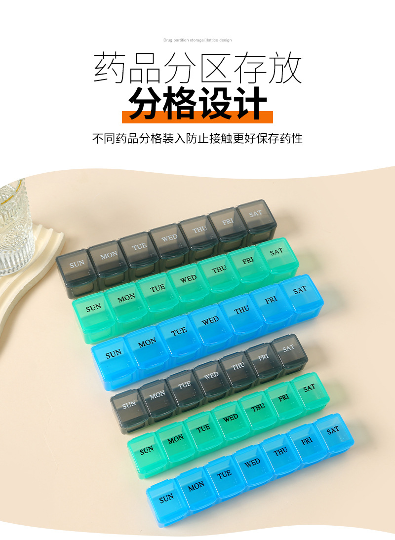 直接販売クロスボーダー中号7格一週間薬箱独立分格分注携帯薬品錠剤収納箱
