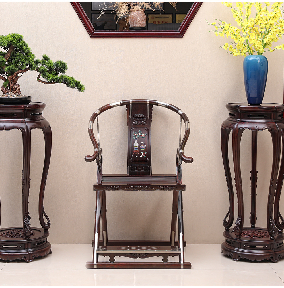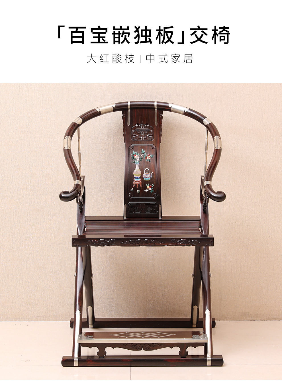 赤い木の家具の頭は椅子の大きい赤い酸の枝の百宝をつないで椅子の単独の板の実木の背もたれの椅子の折り畳みの椅子に嵌め込みます。