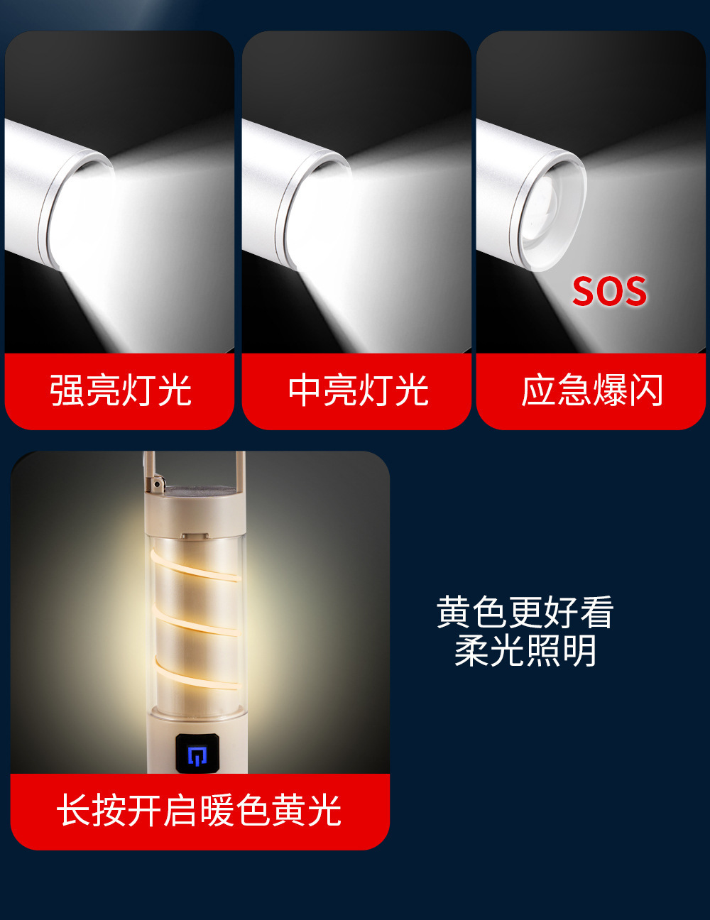 クロスボーダー多機能充電ハンディテントライト暖かい光懐中電灯屋外キャンプキャンプライトタングステン線ダブル光源