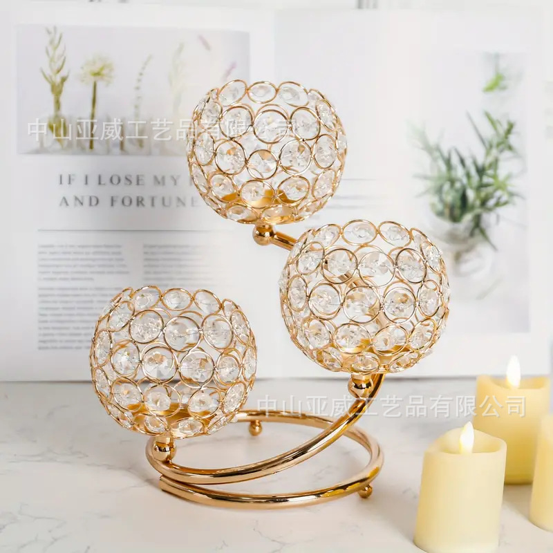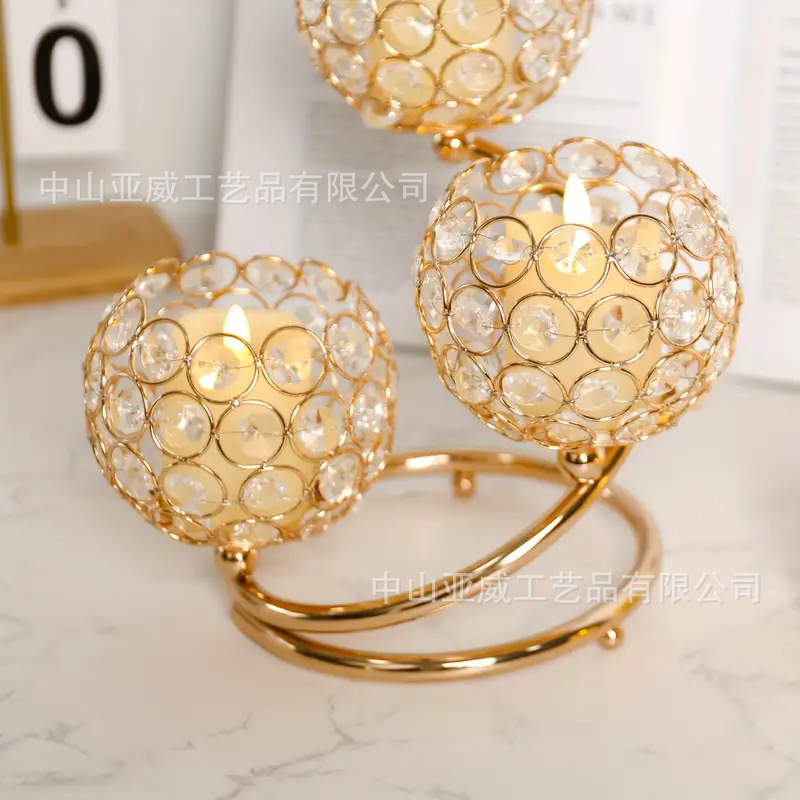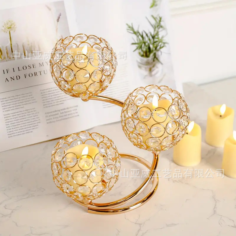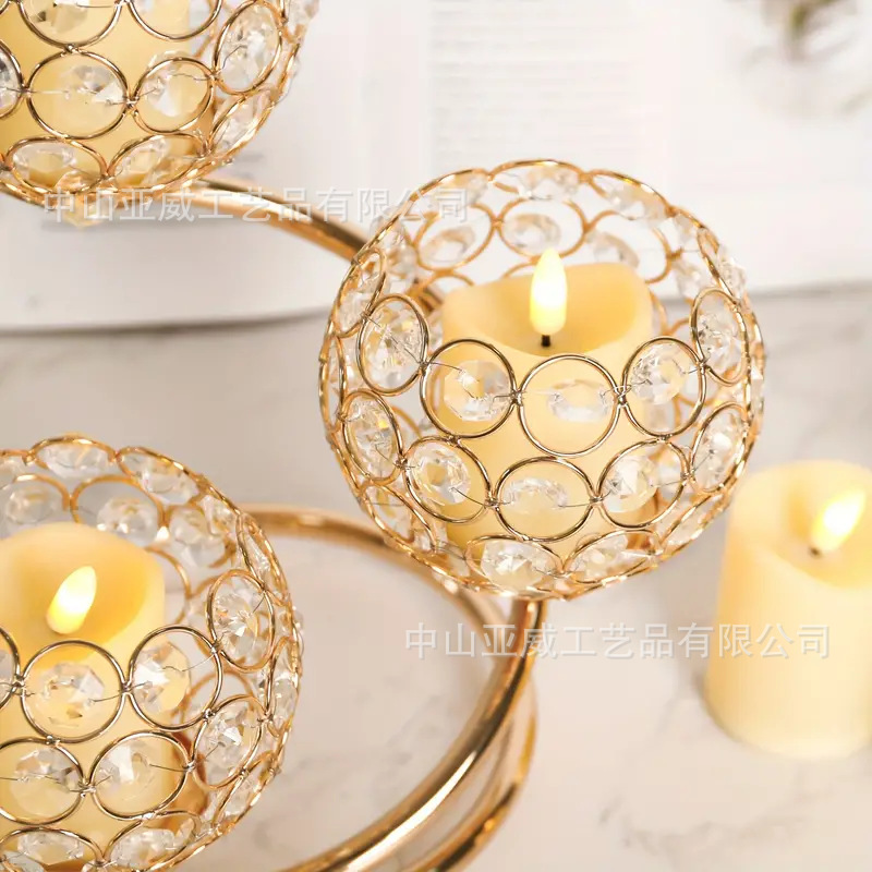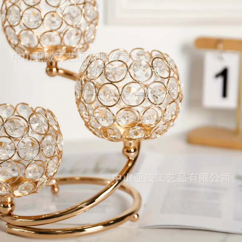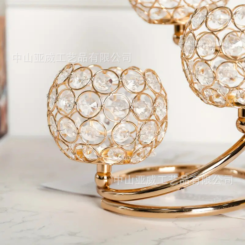北欧の軽豪華なクロスボーダーの結婚式の道具水晶のロマンチックなデスクトップの電気めっきの透かし彫りの燭台の鉄芸のろうそくの杯の置物