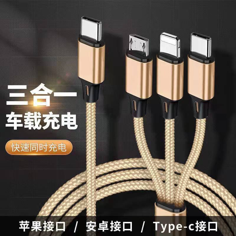 USBインターフェイス三合一充電ケーブル一引き三通用安卓Type-cインターフェイス自動車充電