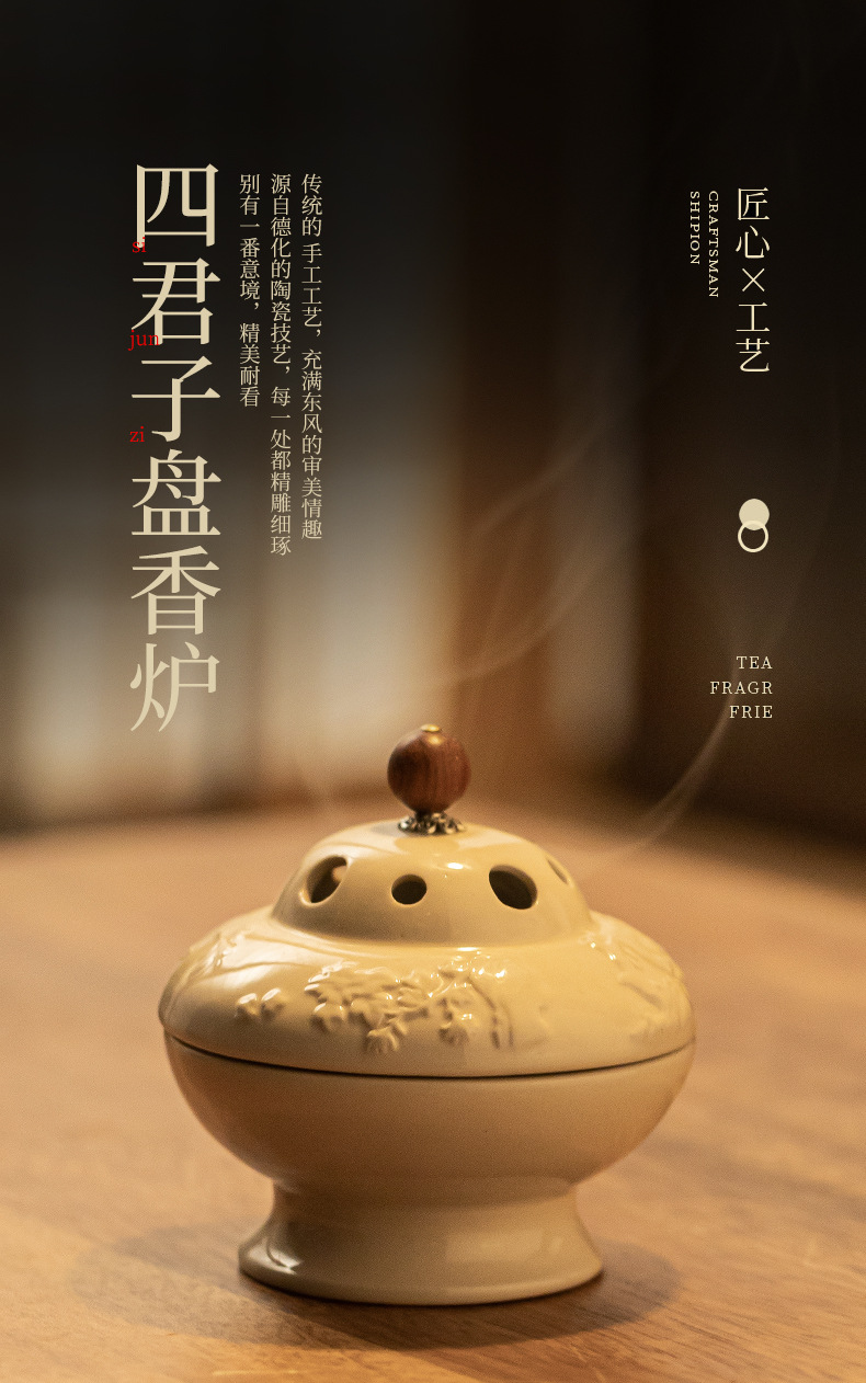 仿古梅蘭竹菊クロスボーダーセラミック香炉置物 家庭用室内香炉 四君子香炉 香篆セット