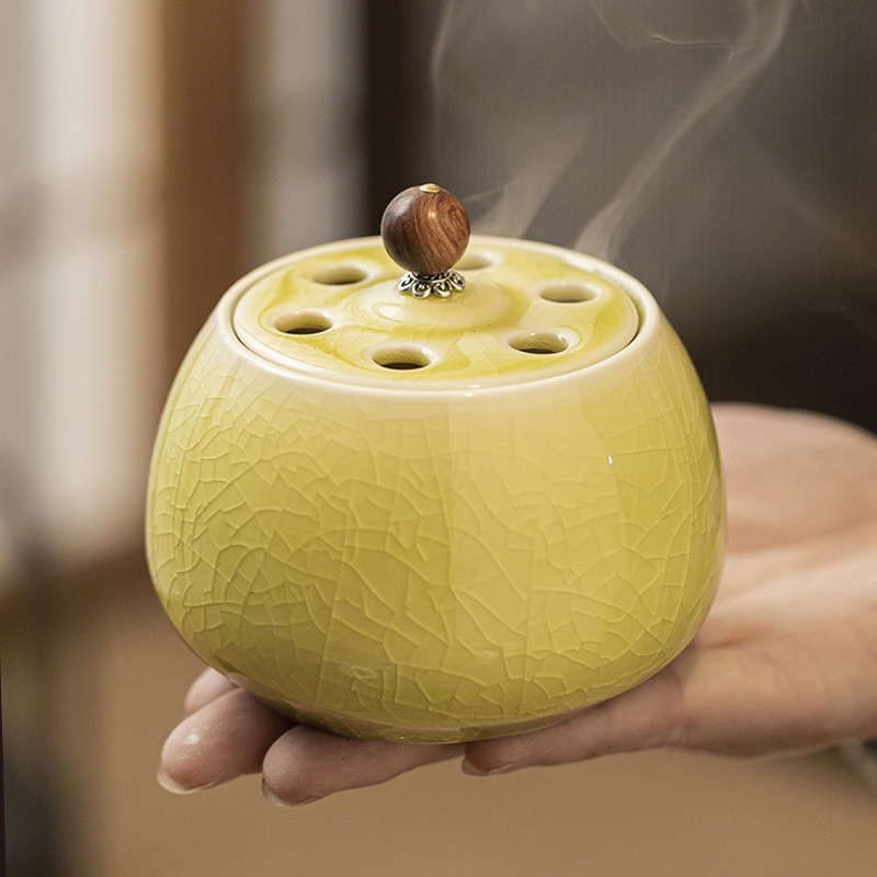 陶磁器の哥窯盤香炉の置物家庭用室内氷裂香薫炉沈香炉茶卓香道檀香器