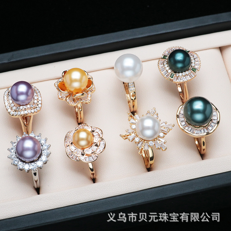 925銀の高貴な気品の金の南の海の金の玉の指輪の海水の濃い金色の真珠の戒子の正円の指の環の女性の百合