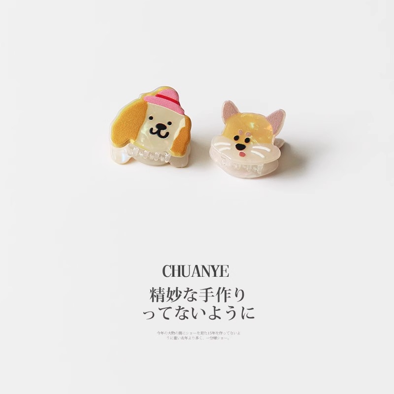 2つのキャラクターの犬は韓国系のかわいい柔らかい妹の髪飾りの少女の髪を挟んで馬尾を挟んで前髪を挟みます。