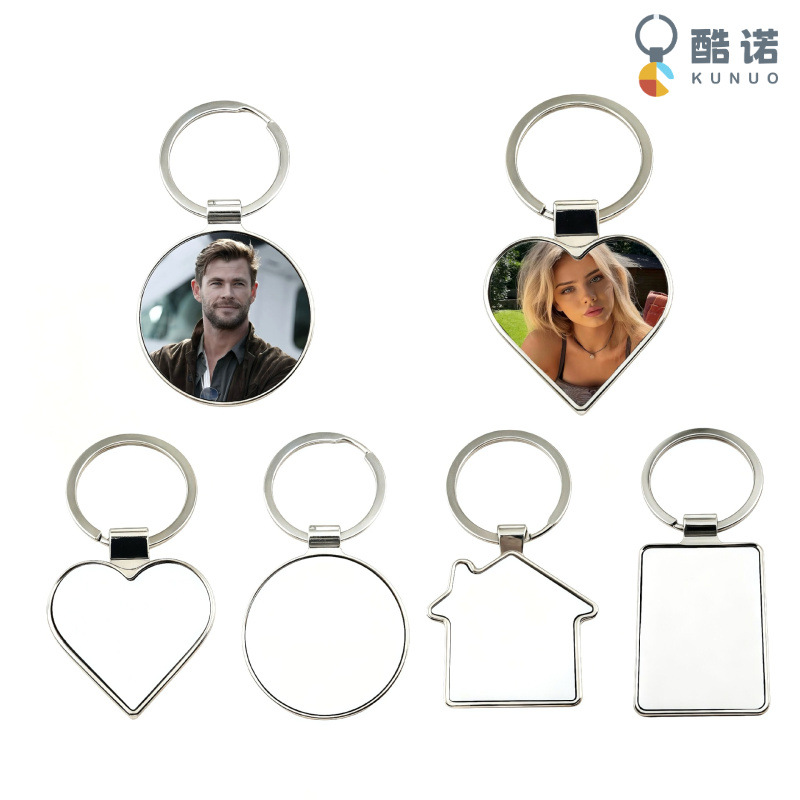 酷诺热转印钥匙扣 锌合金单牌钥匙扣 心形空白矩形房子钥匙扣