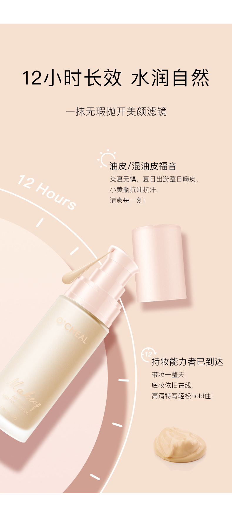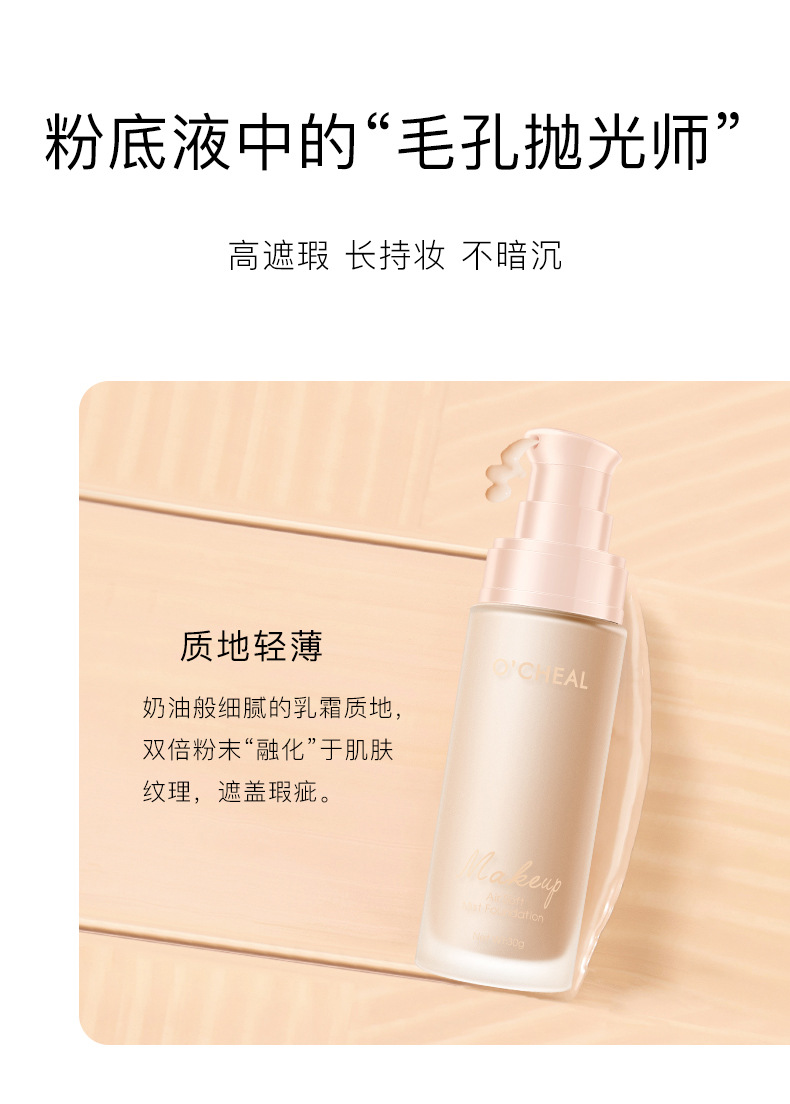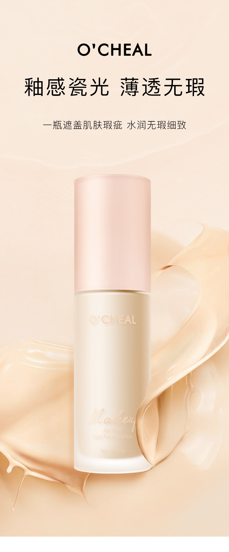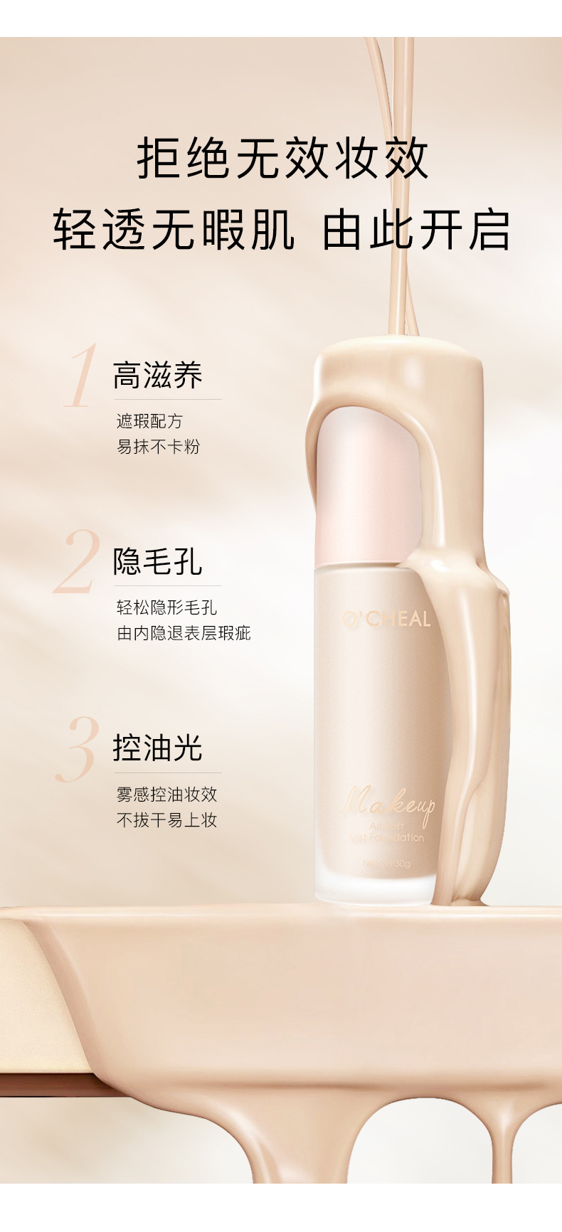 跨境专供爆款O'CHEAL空气柔雾粉底套装轻薄水润遮瑕不脱妆粉底液