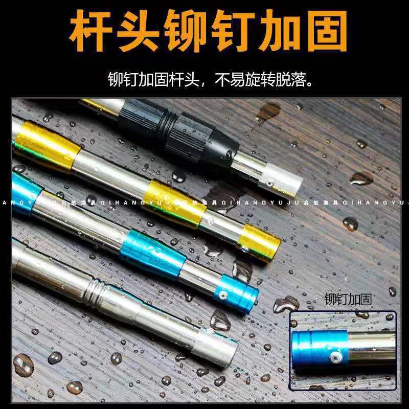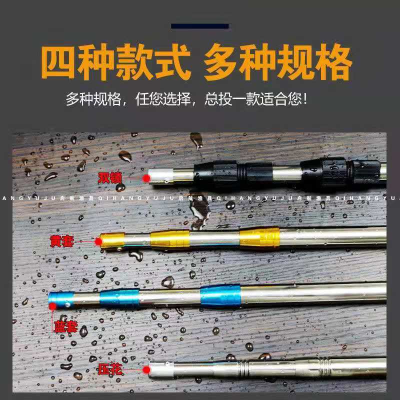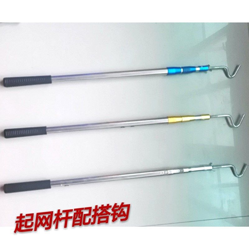 厚いステンレスの魚籠の網の棒を持ち上げてエビ籠の竿を持ち上げて網の伸縮棒の漁具の長いフックを持ち上げて物の伸縮竿を取ります。