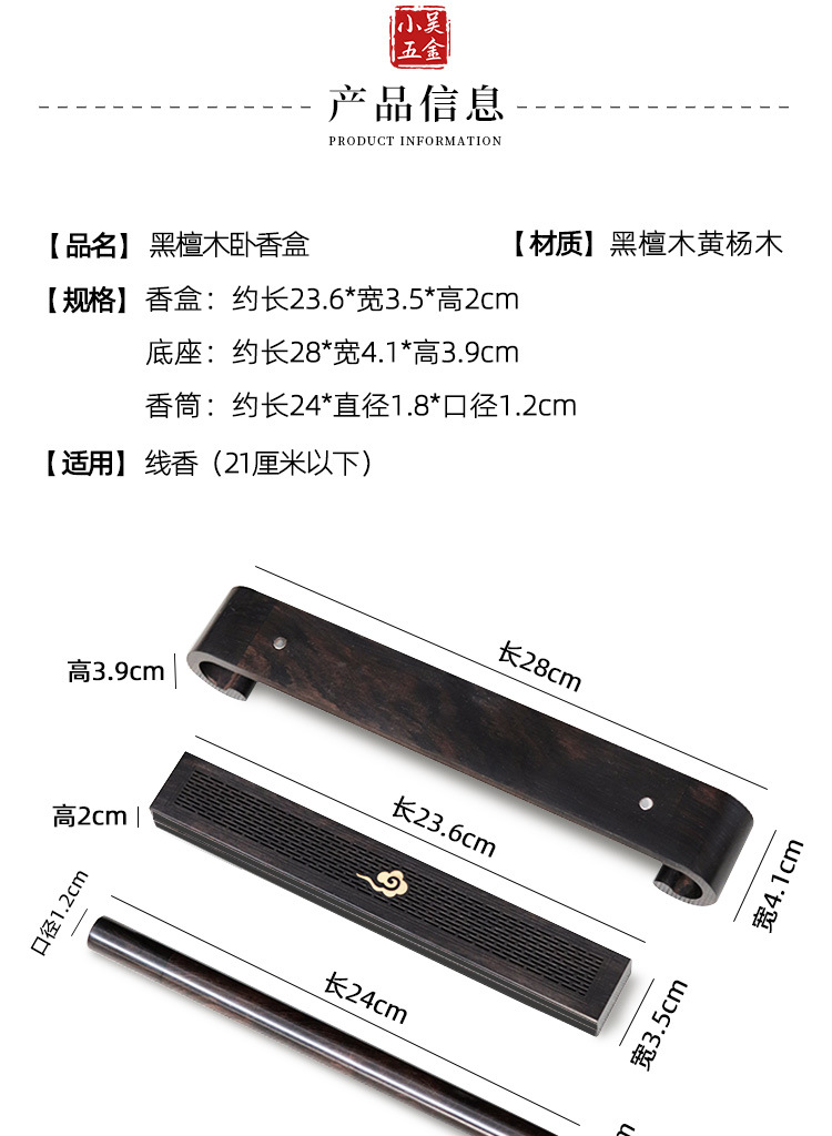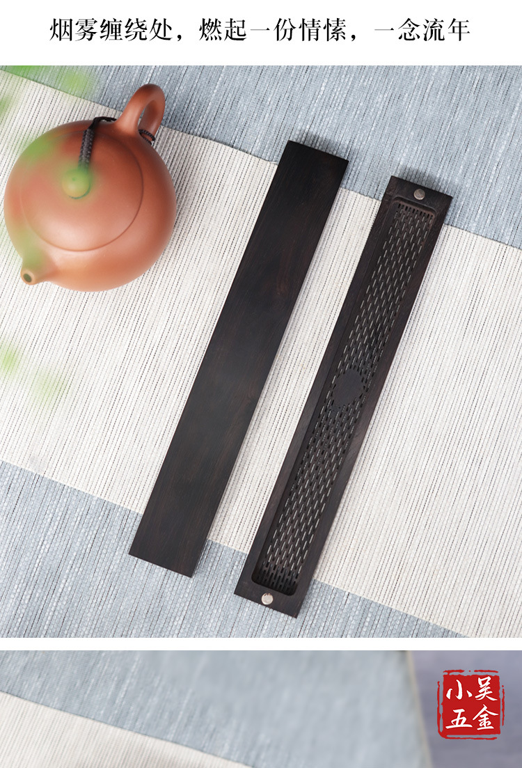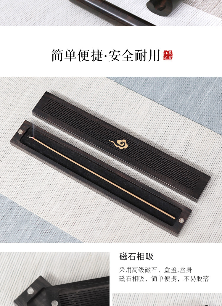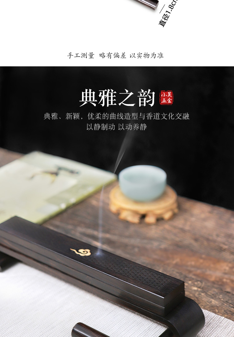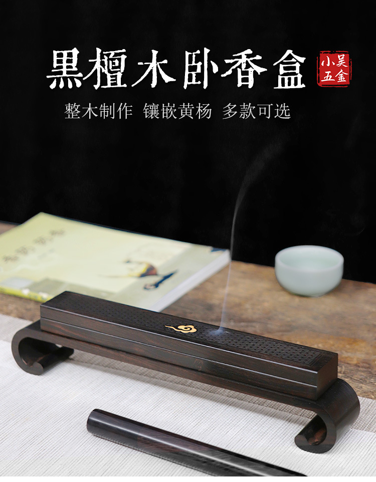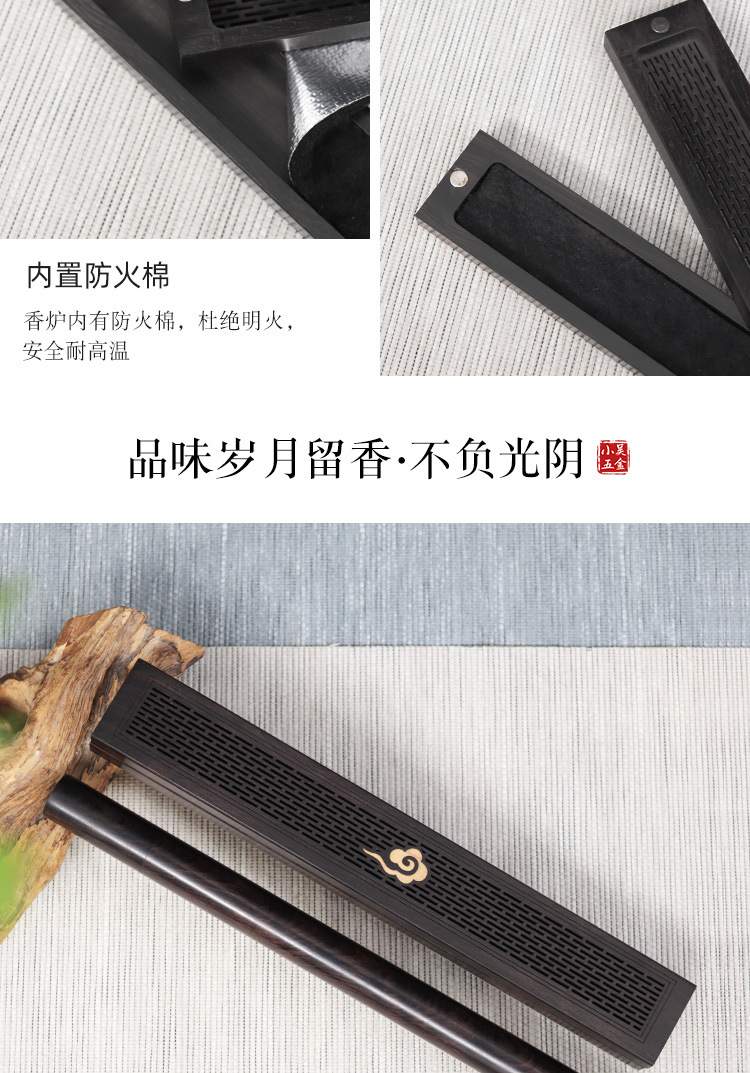 仕様 長型祥雲黒檀臥香箱,黒檀ベース,ロング黒檀平口香管,セット