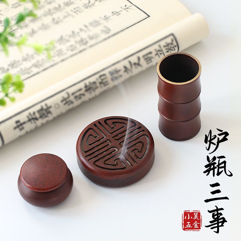 真鍮香道用具入門セット香炉家庭用室内香薫打香篆具蘇工炉瓶三事