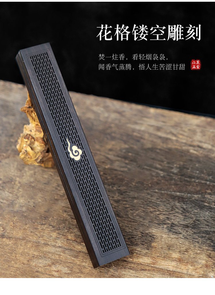 黒檀の線香箱の臥香炉の線香箱の線香はホノルルの木質の実木の香りを挿してホノルルの香りを沈めます。