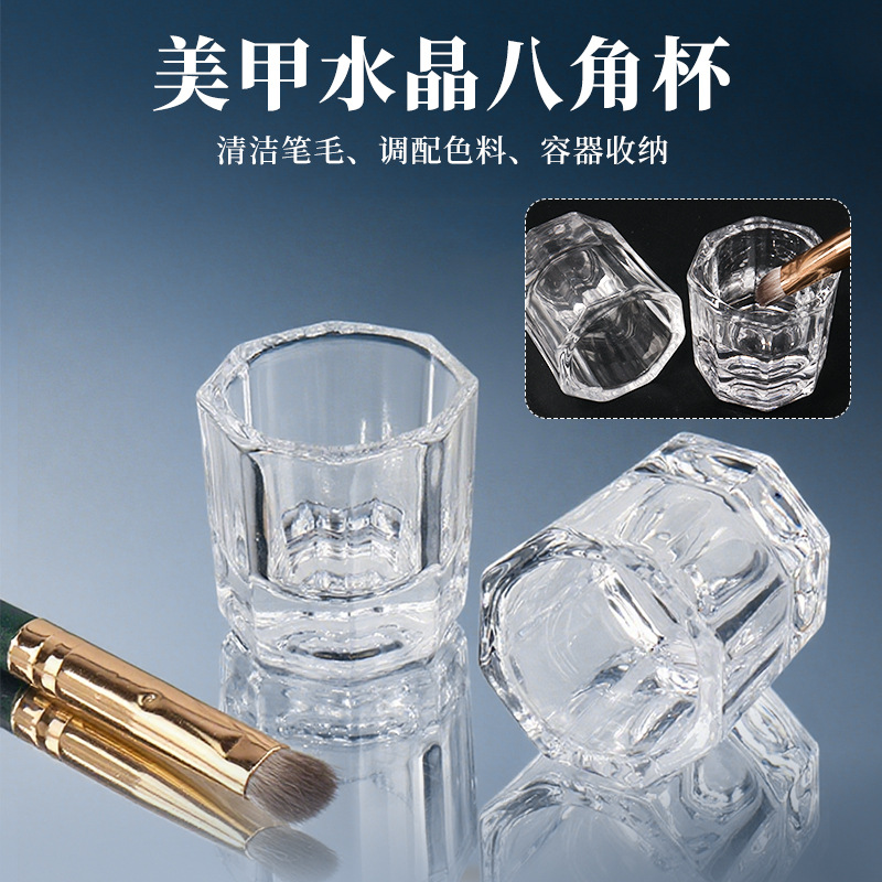美甲工具八角杯 盖子防挥发洗笔杯 制做水晶甲专用液体杯调和杯