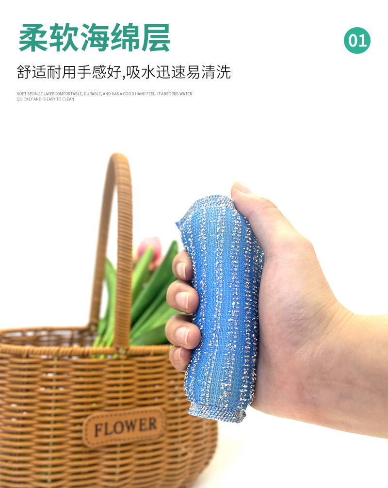 2枚のスポンジを入れて台所を拭き、スポンジを拭き、鍋を拭き、神器を磨きます。