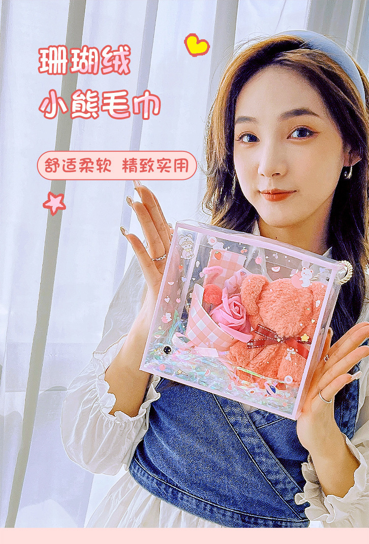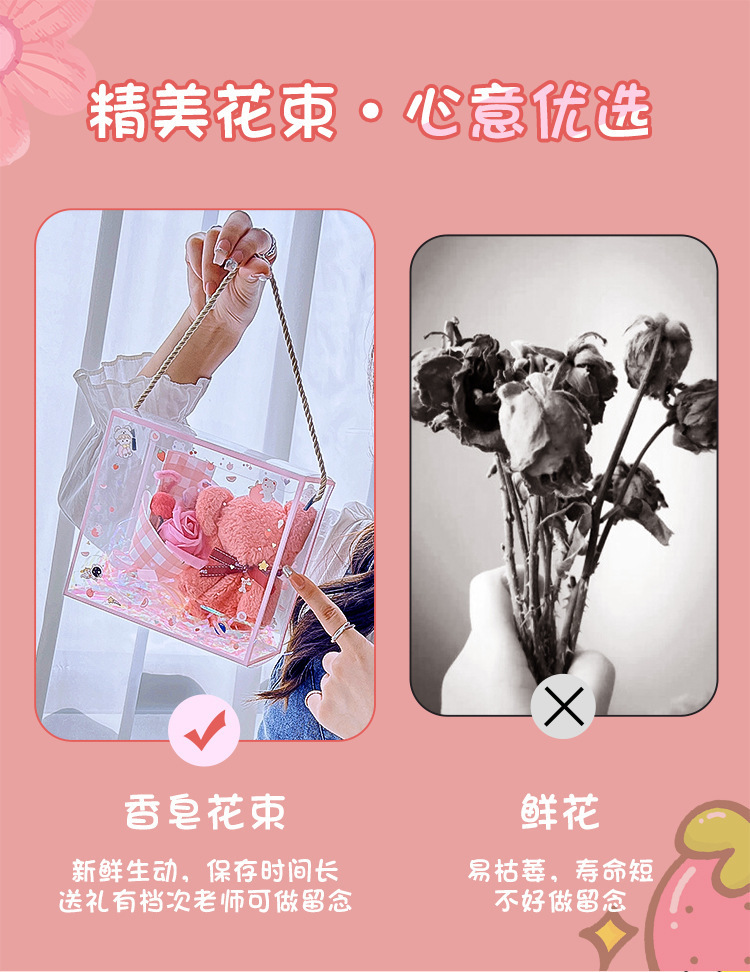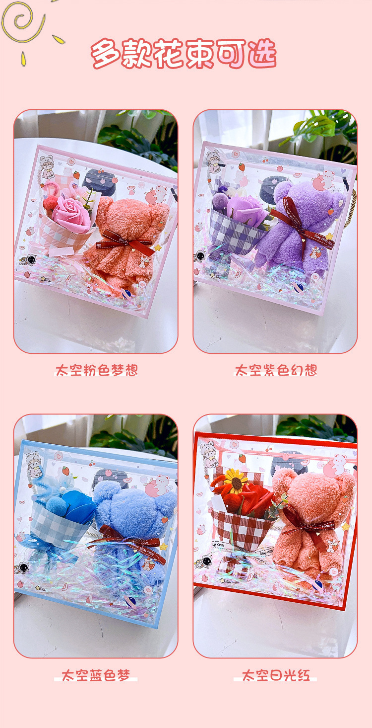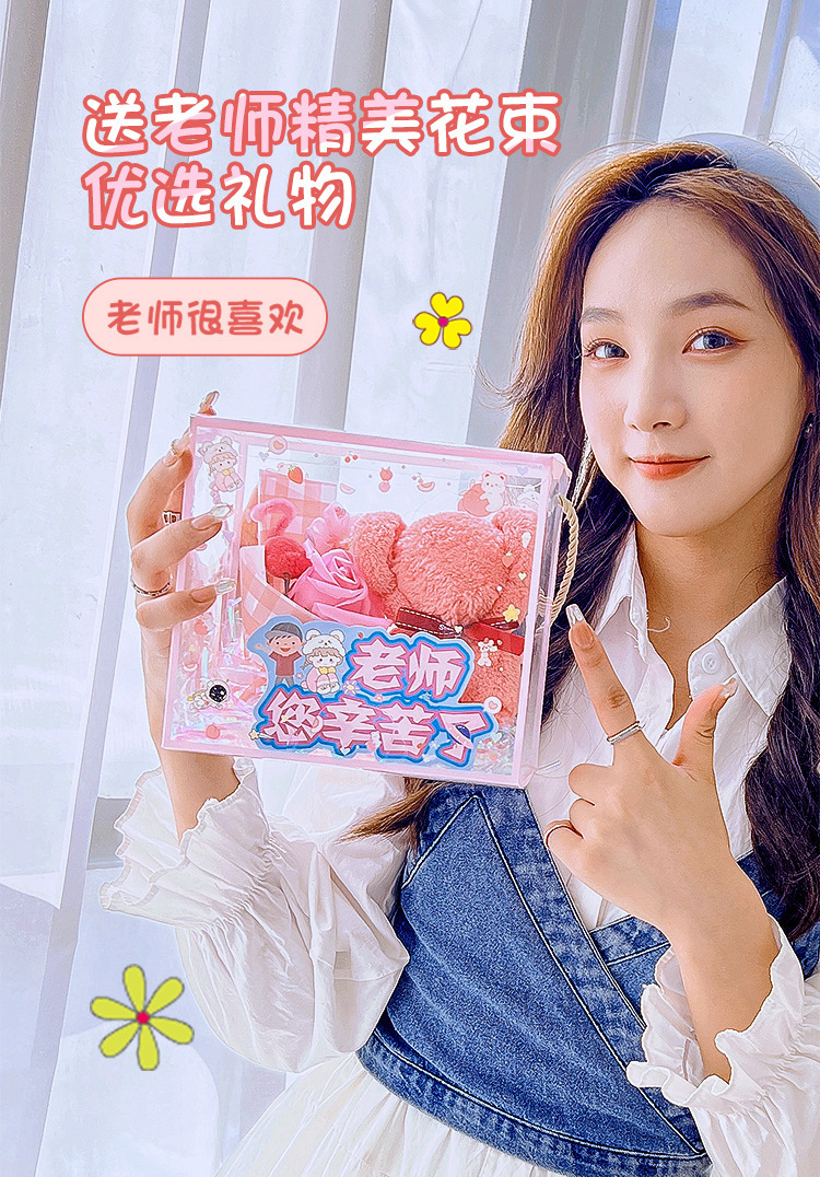 教師の日のプレゼントは草のバラの花束のアイデアの熊のタオルのプレゼント袋の幼稚園に子供のお土産を送ります。