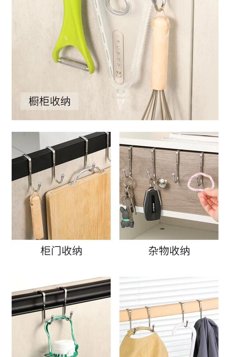 不锈钢双S型挂钩免打孔置物架宿舍床挂衣钩厨房多功能橱柜门背S钩