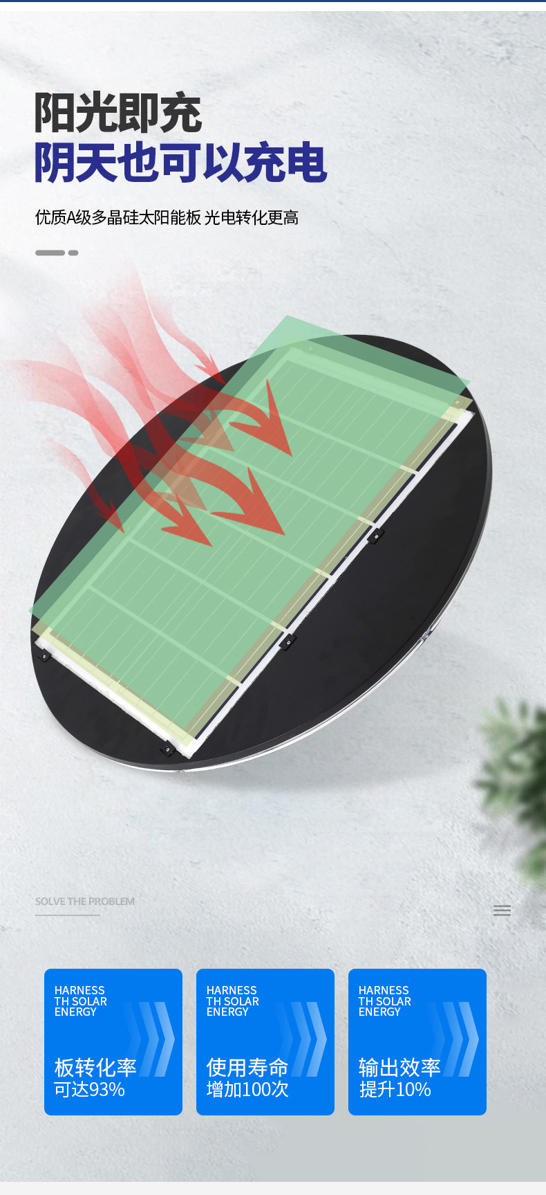 アルミ円盤太陽光路灯頭四葉草金スミレ金庭灯屋外超明るい屋外防水