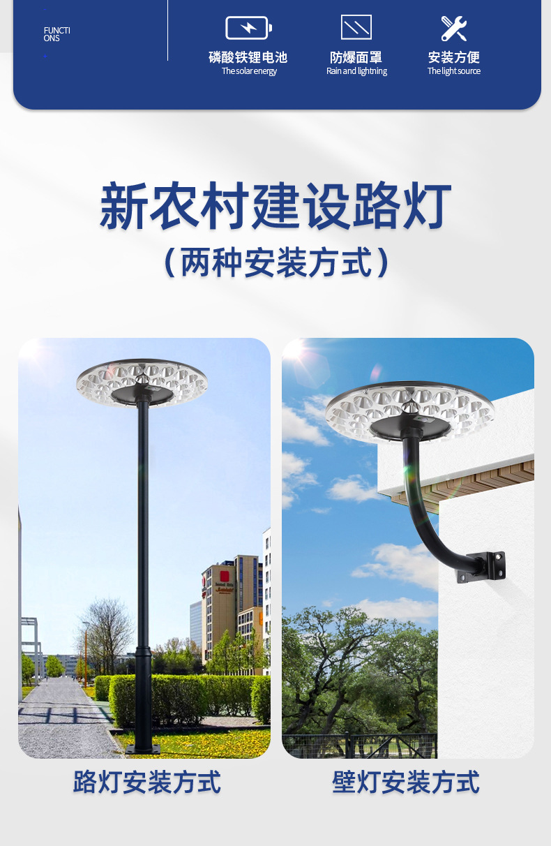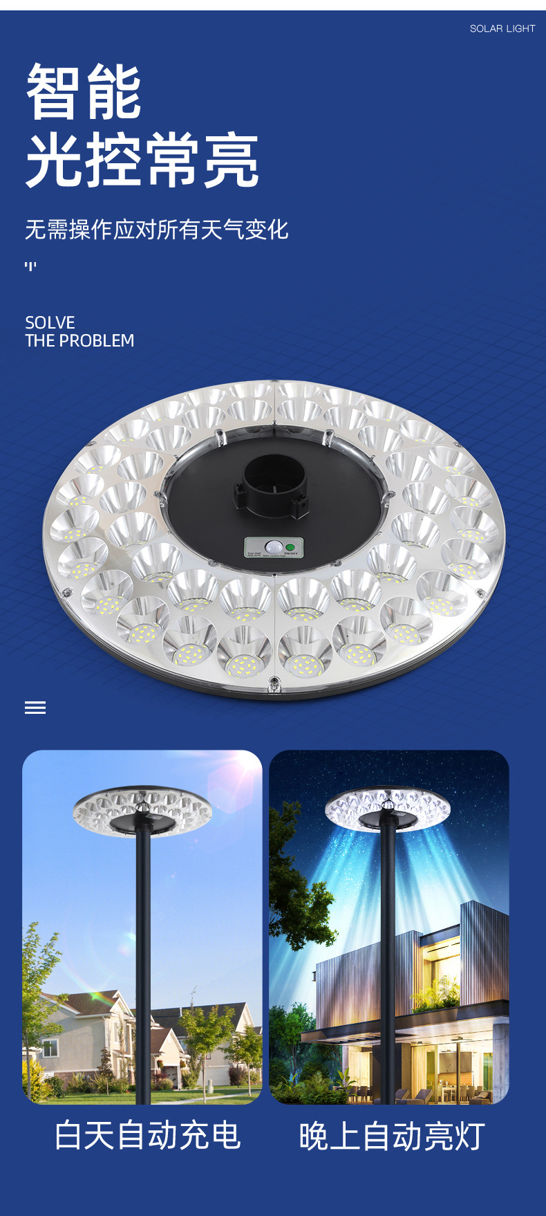 超亮航続久太陽エネルギー灯屋外庭灯角盤水晶灯カバー現代シンプル公園屋外灯