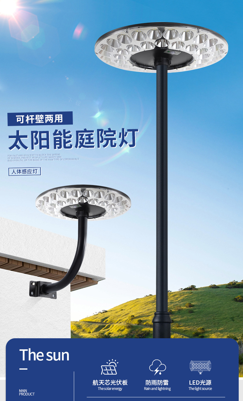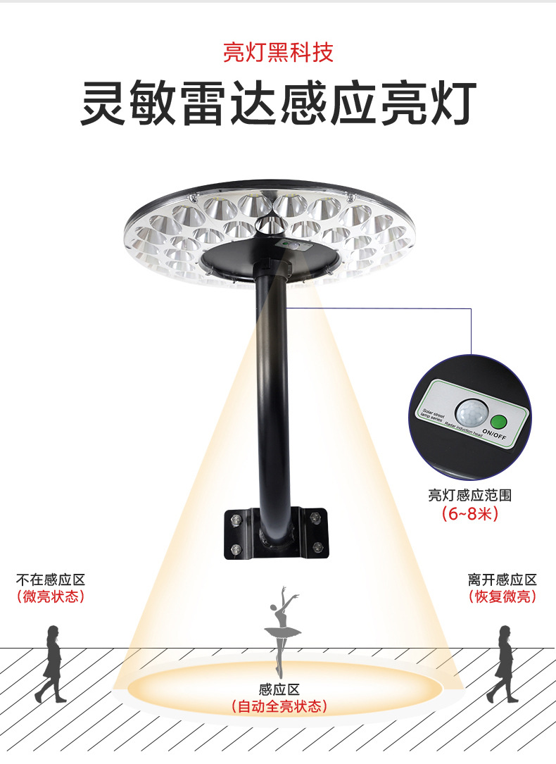 2024新型ソーラーライトヘッド飛皿ランプ360度照明自動誘導式庭園ランプ庭