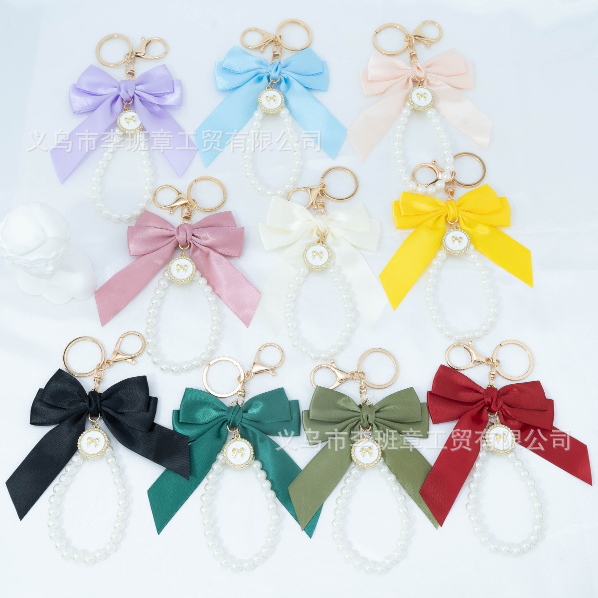 メーカー供給 大型リボン 模造パール ブレスレット キーホルダー カラフルな織り紐 合金タグ バッグ飾り