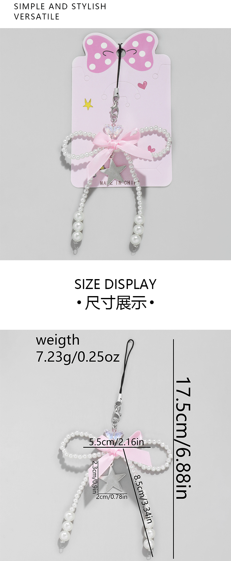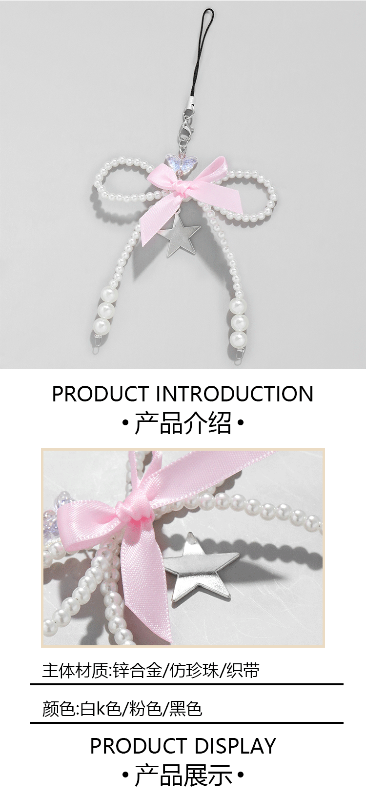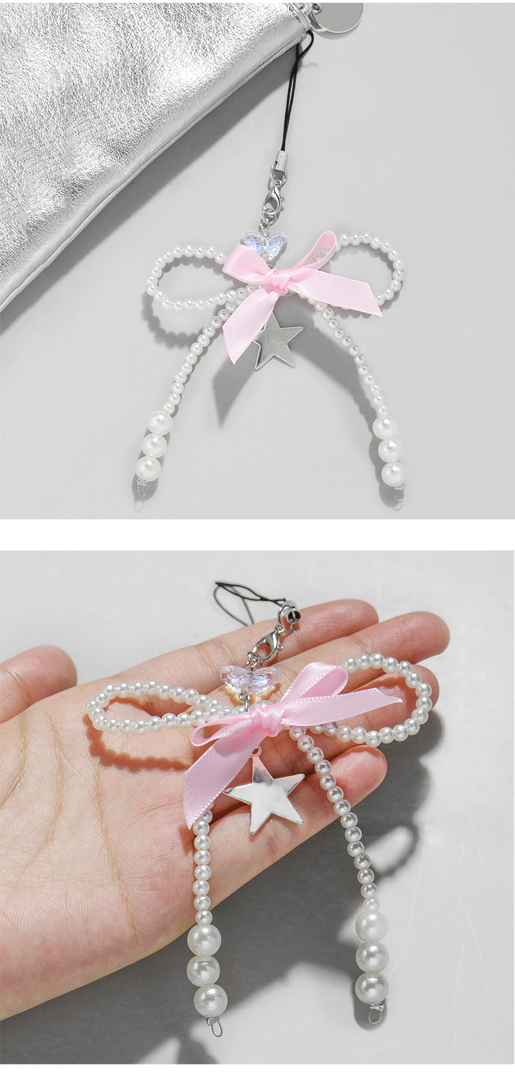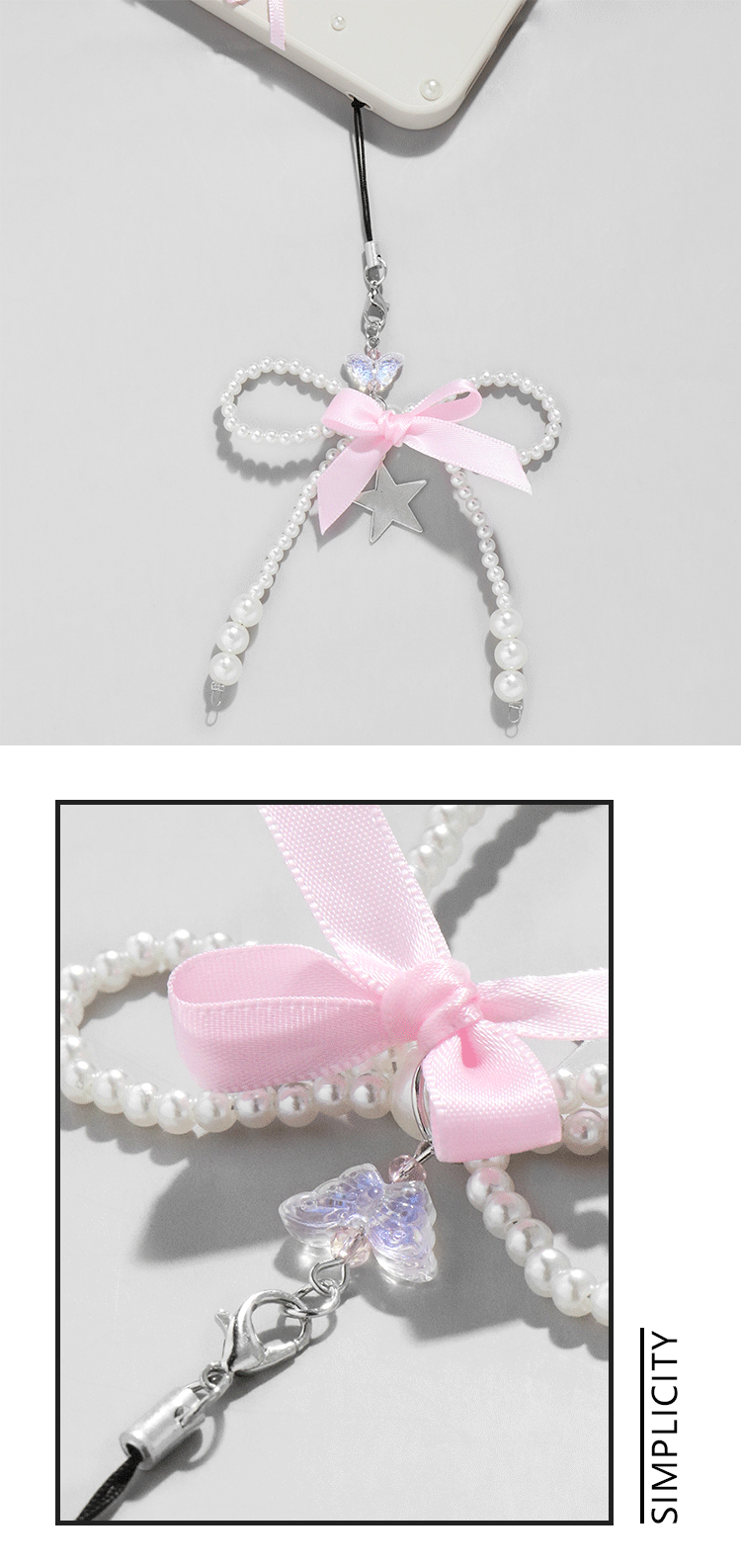 シンプルな手作りビーズ真珠蝶ネクタイピンクの携帯電話のストラップ水晶星ペンダント