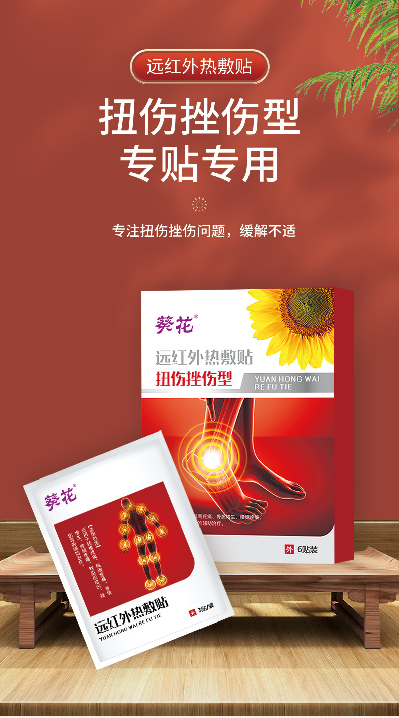 ひまわり石膏パッチ、捻挫・挫傷型遠赤外線温湿布パッチ、捻挫・捻挫痛パッチ、足首捻挫パッチ