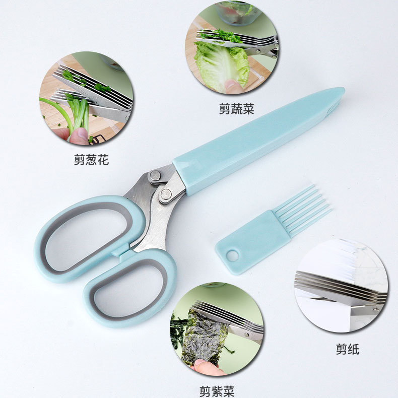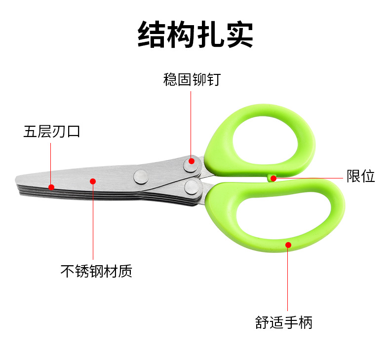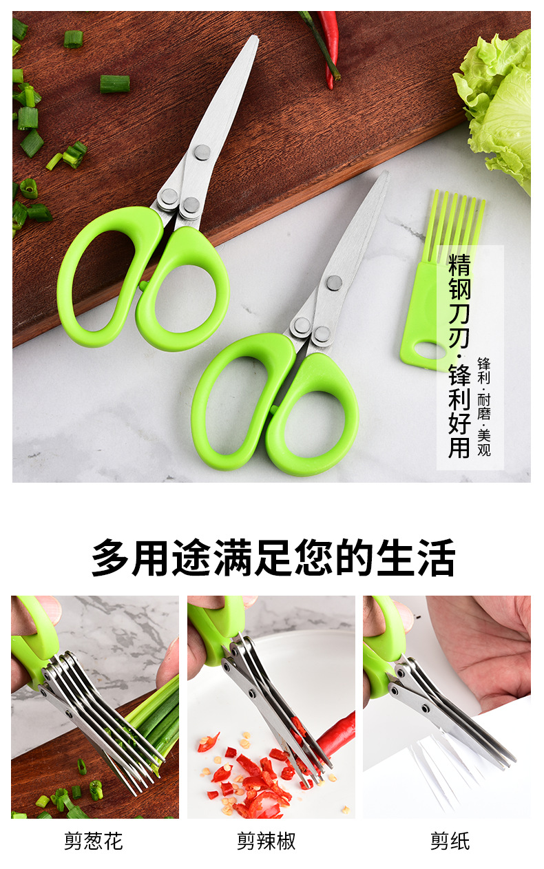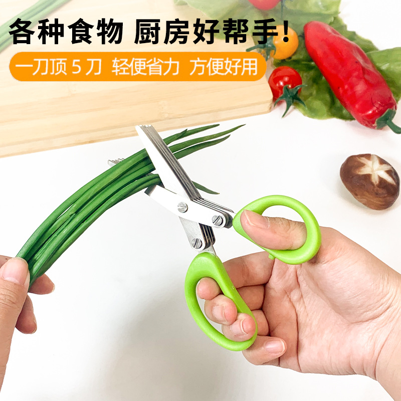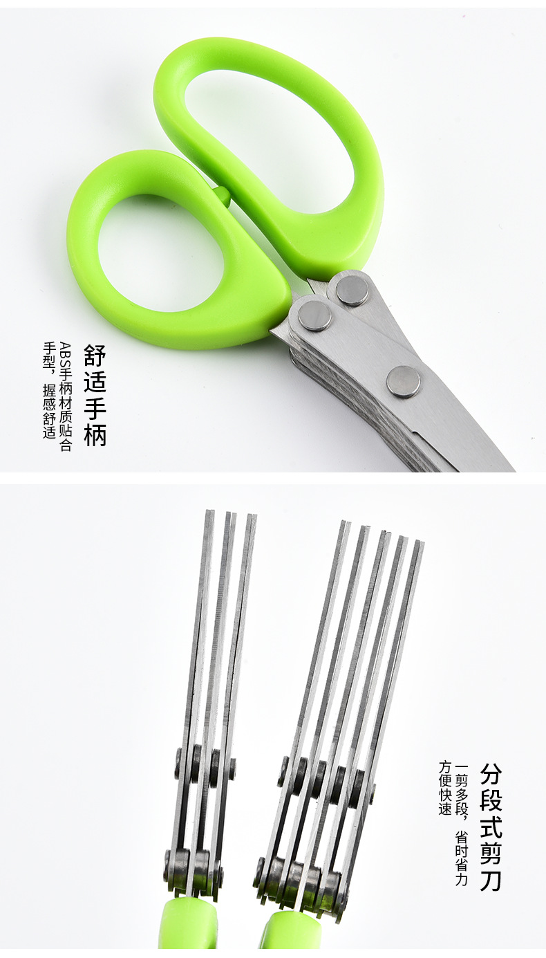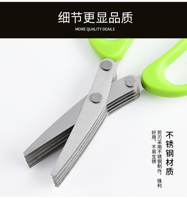 现货五层不锈钢葱花剪多功能厨房紫菜辅食食物剪家用多层蔬菜剪刀