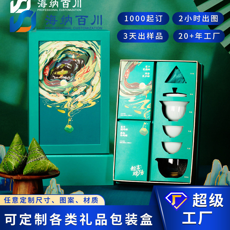 お茶のギフトボックスの緑のふたを開けて引き出し式のプレゼントカップの透かし彫りのお土産の包装箱の空き箱の工場は卸売りします。