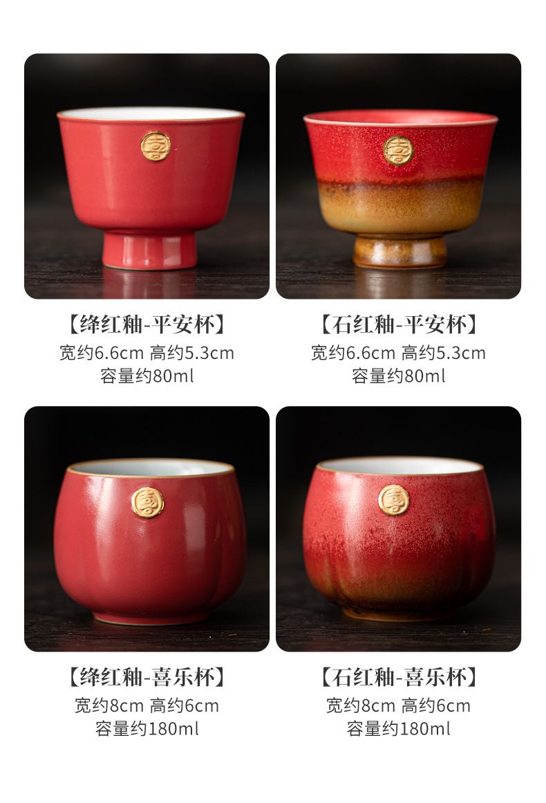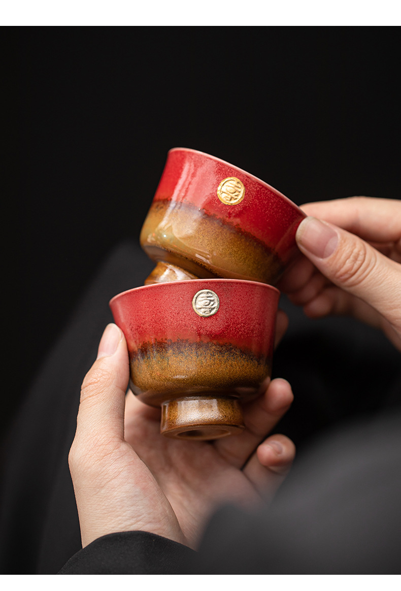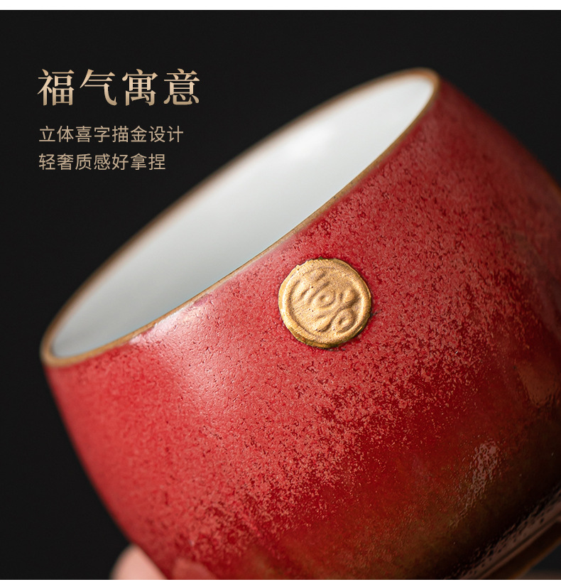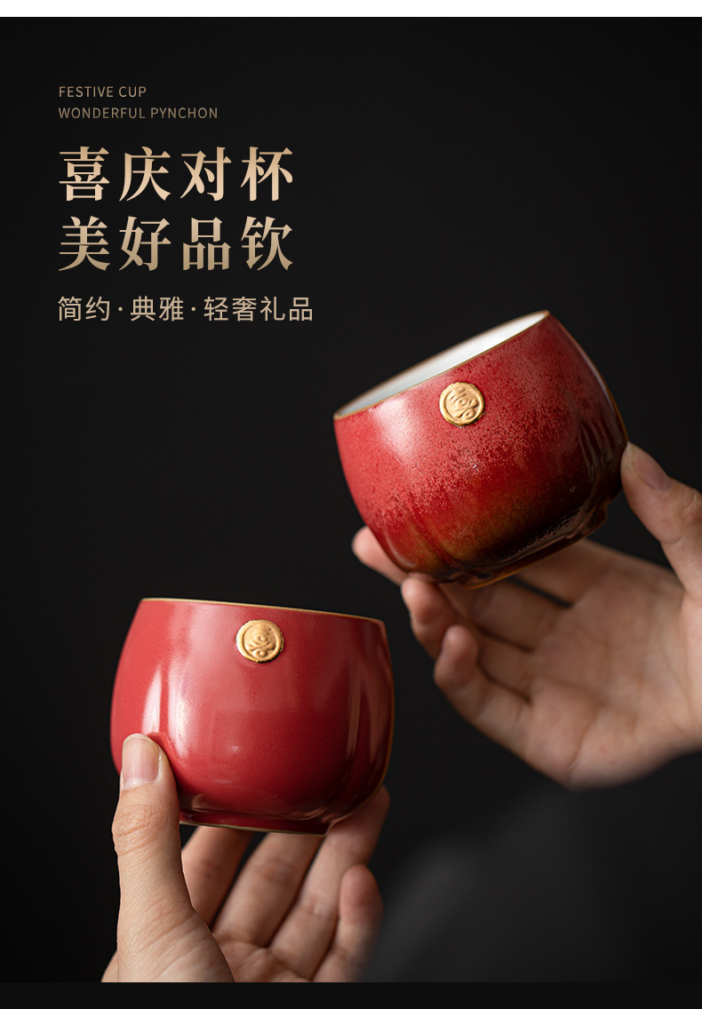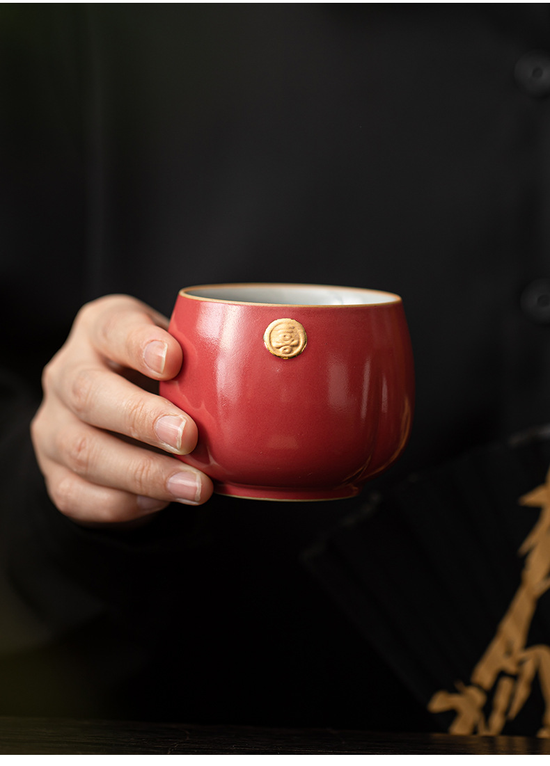 陶瓷复古主人杯泡茶杯个人杯茶盏茶室品茗杯结婚红色喜庆敬茶杯子