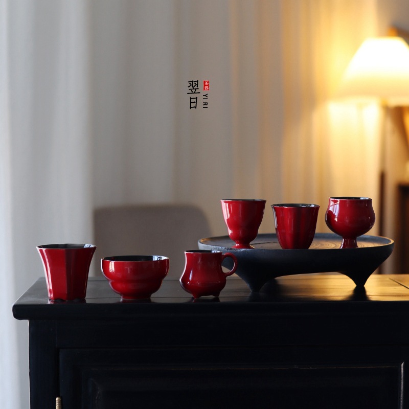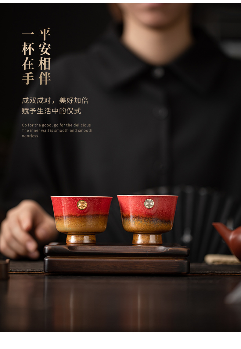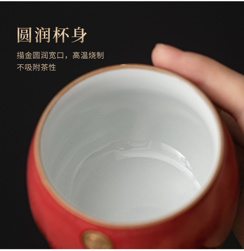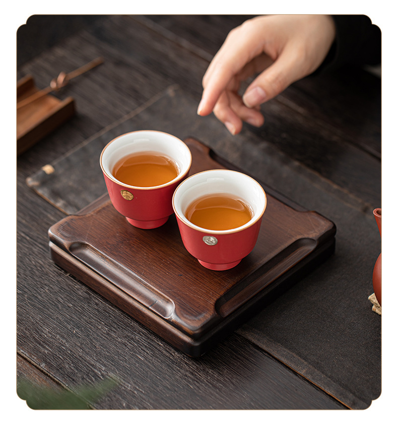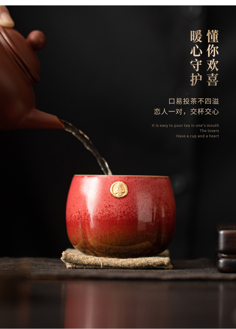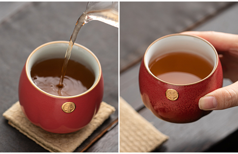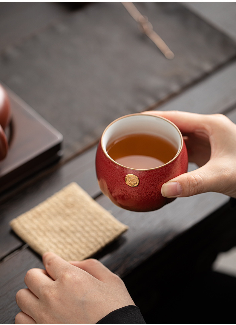 陶瓷复古主人杯泡茶杯个人杯茶盏茶室品茗杯结婚红色喜庆敬茶杯子