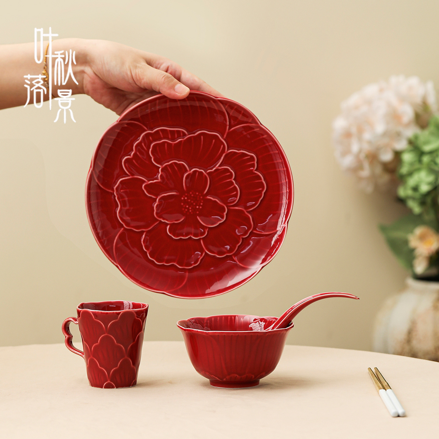 陶瓷结婚喜碗筷勺套装新婚女方陪嫁婚礼红色陶瓷喜碗筷
